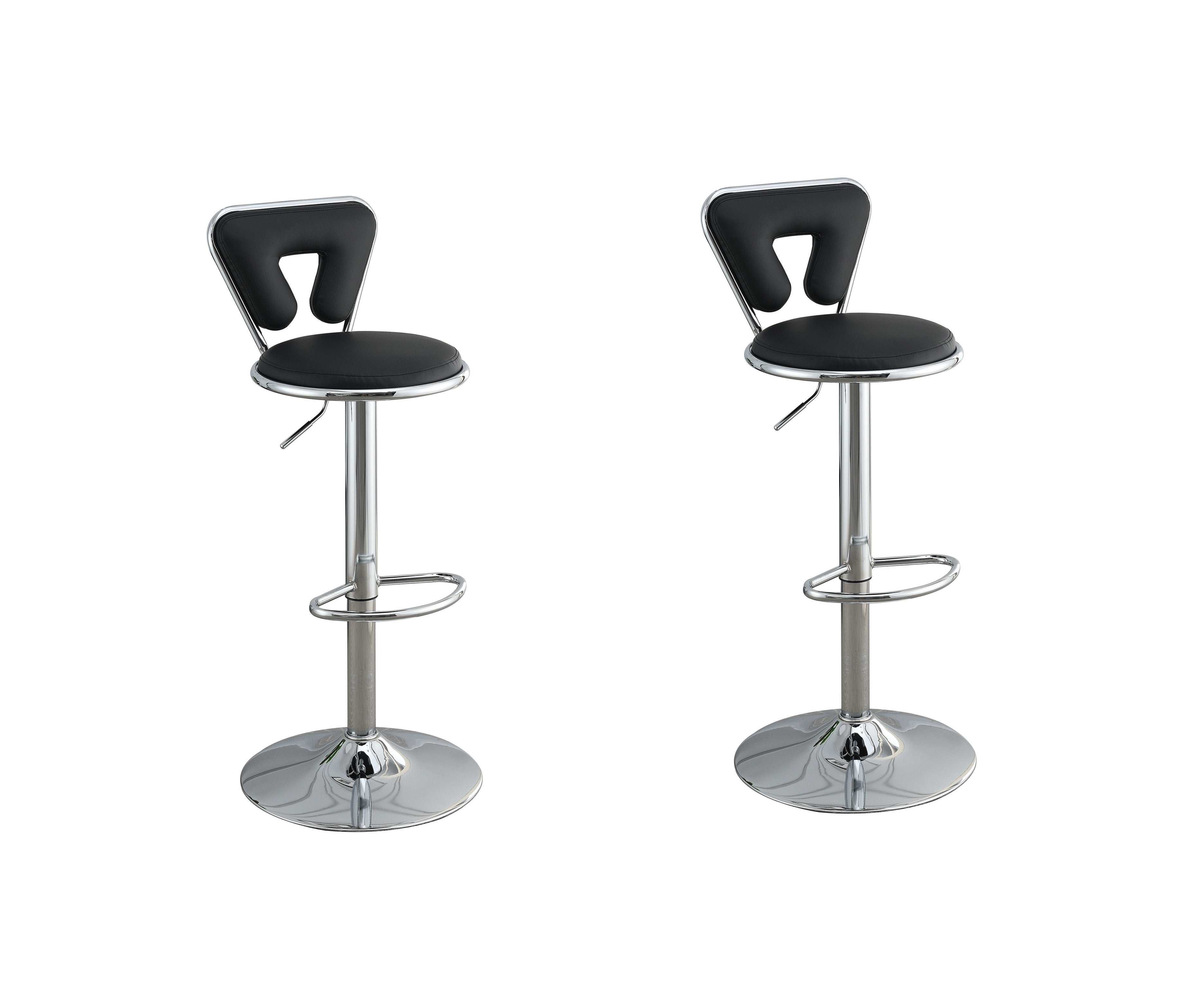 Add a touch of modern sophistication to your home bar or kitchen island with this set of two adjustable bar stools. Sleek faux leather upholstery, a polished chrome base and a sturdy metal frame combine for a contemporary look that’s built for everyday use. The gas-lift mechanism offers smooth, fingertip height adjustment so each stool adapts to your preferred seating position, while the compact footprint makes these chairs ideal for smaller spaces.