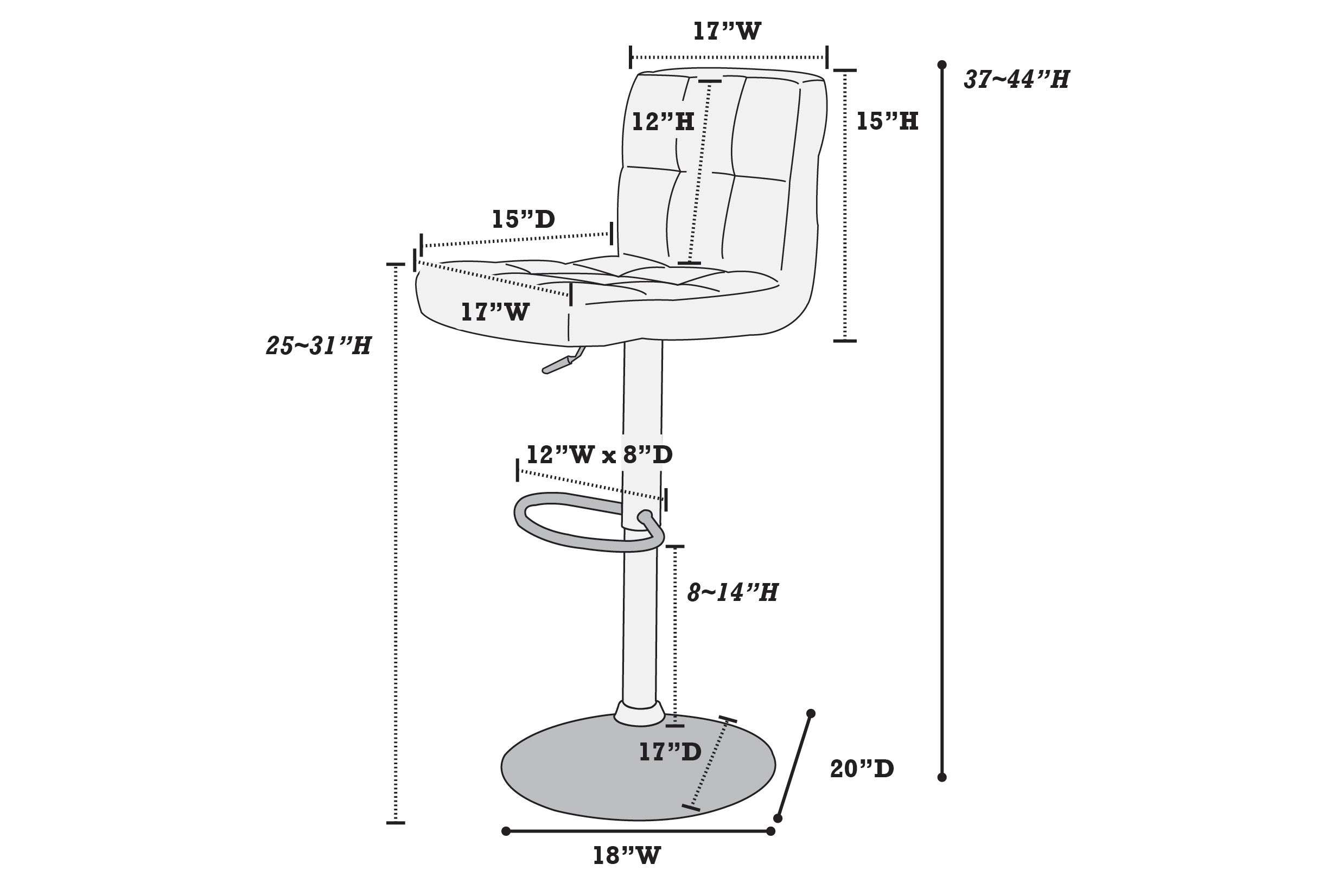 - Adjustability: Gas-lift height adjustment for seamless transition between counter and bar heights; discreet handle located under the seat.