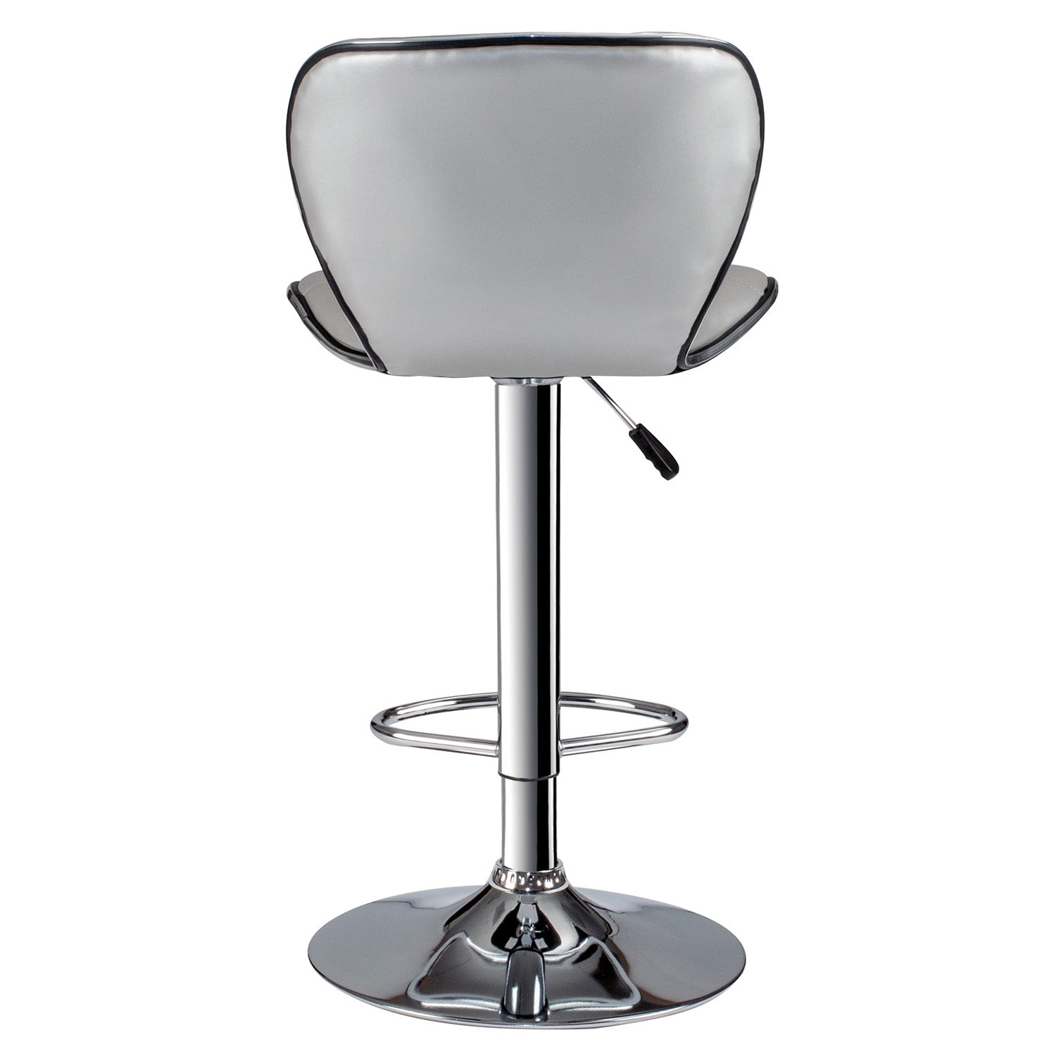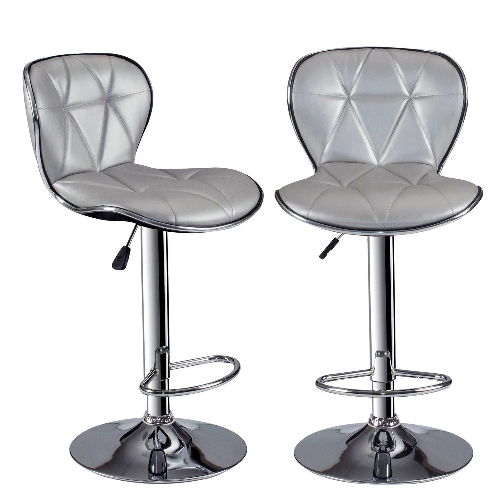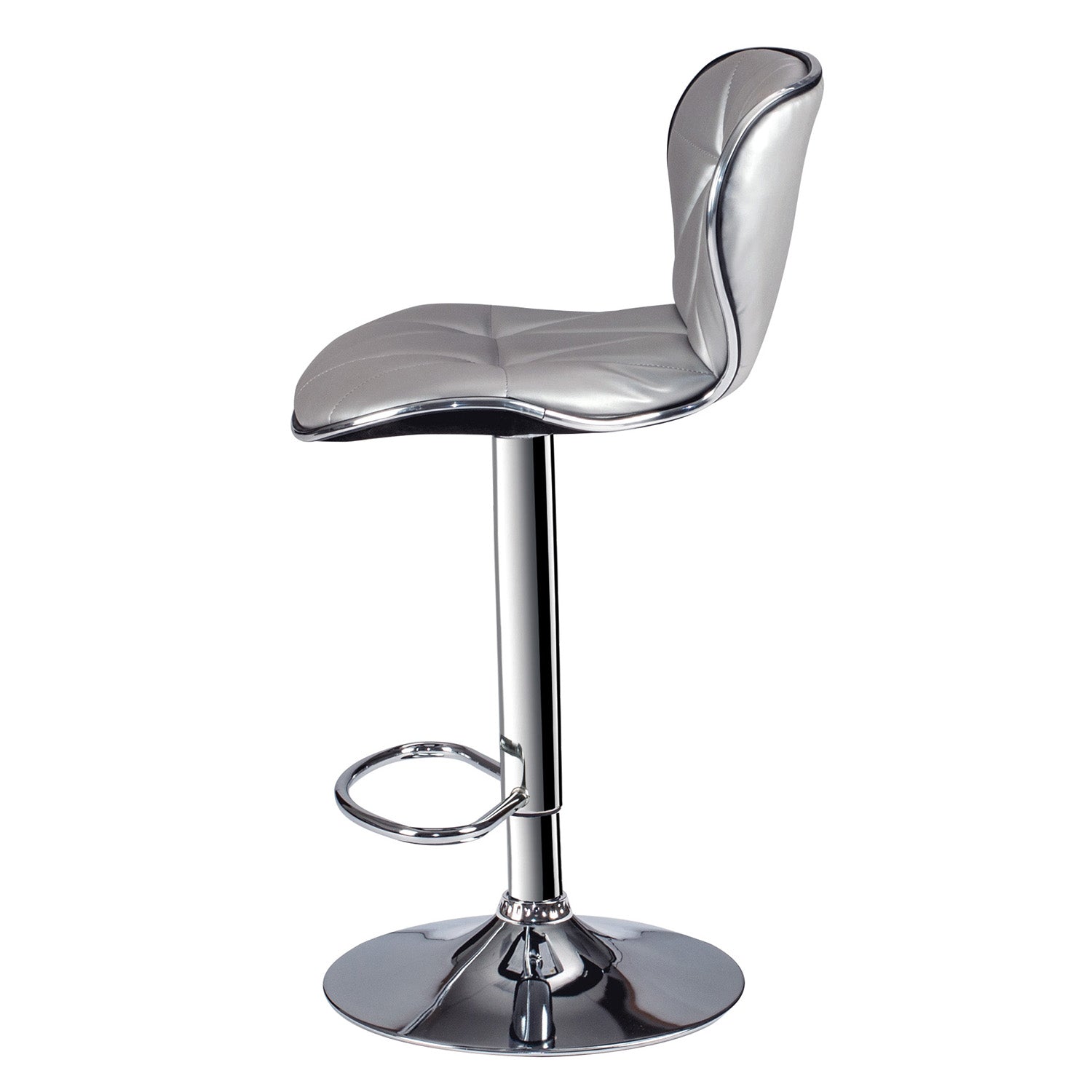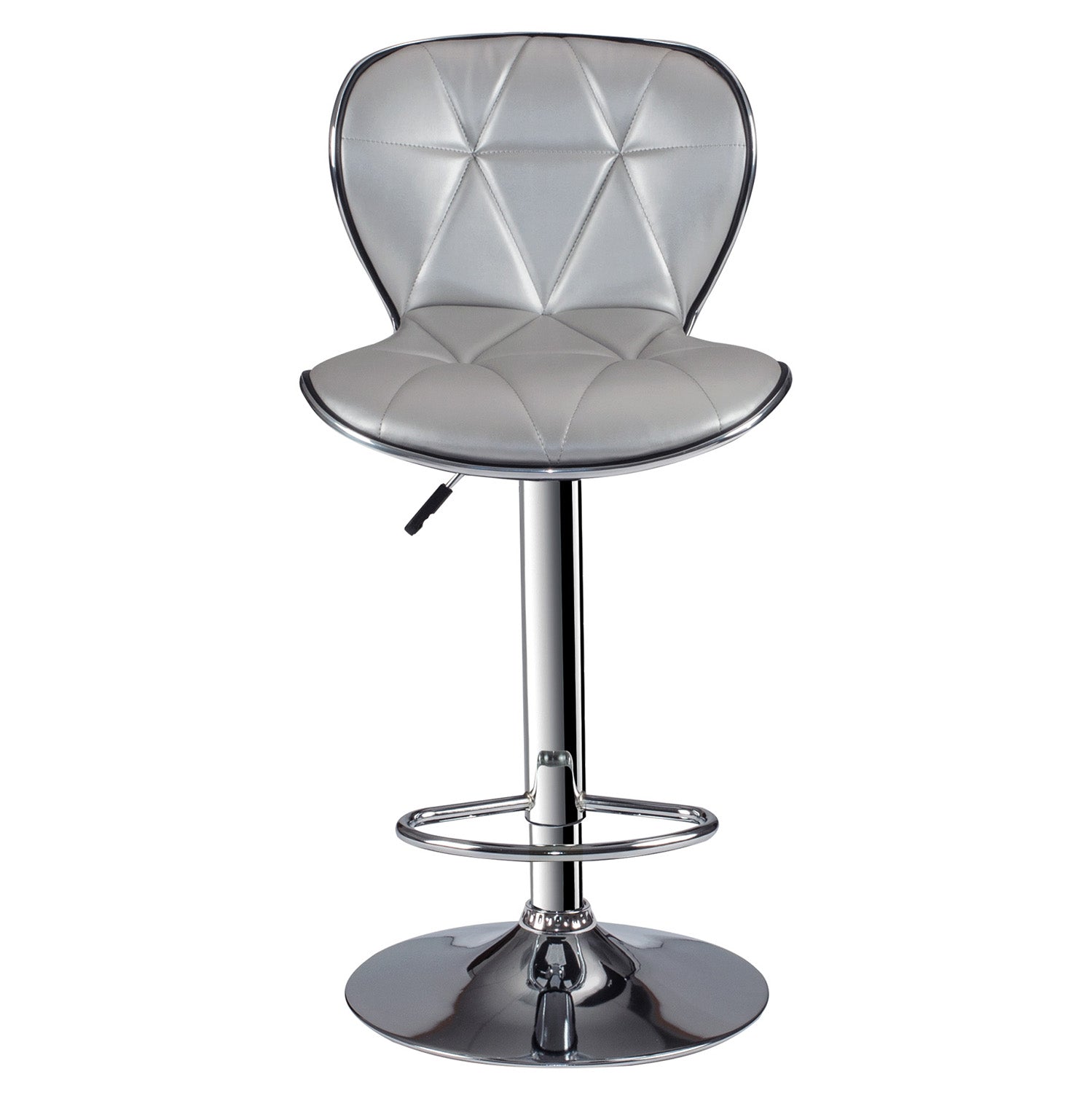 Elevate your kitchen or bar area with these sleek silver barstools—designed for comfort, versatility, and modern style. The adjustable height and smooth 360° swivel make them ideal for everything from quick breakfasts to evening entertaining, while the faux leather upholstery with triangle-shaped tufting brings a contemporary textured look. Built on a sturdy chrome base, their compact, armless profile tucks neatly under counters for a clean, uncluttered appearance.