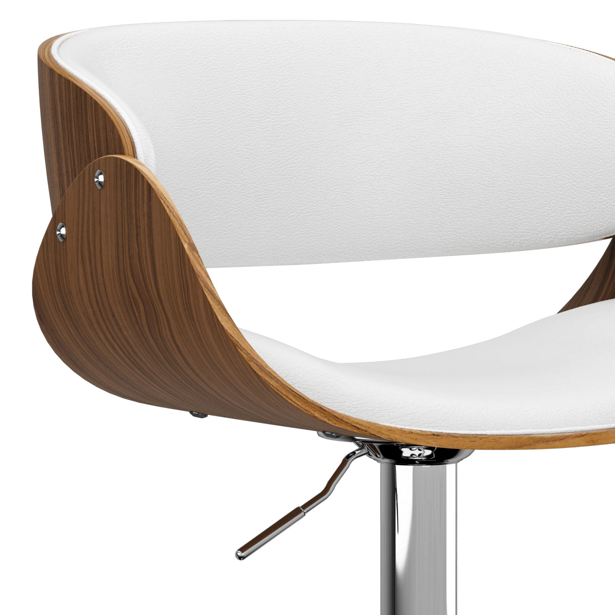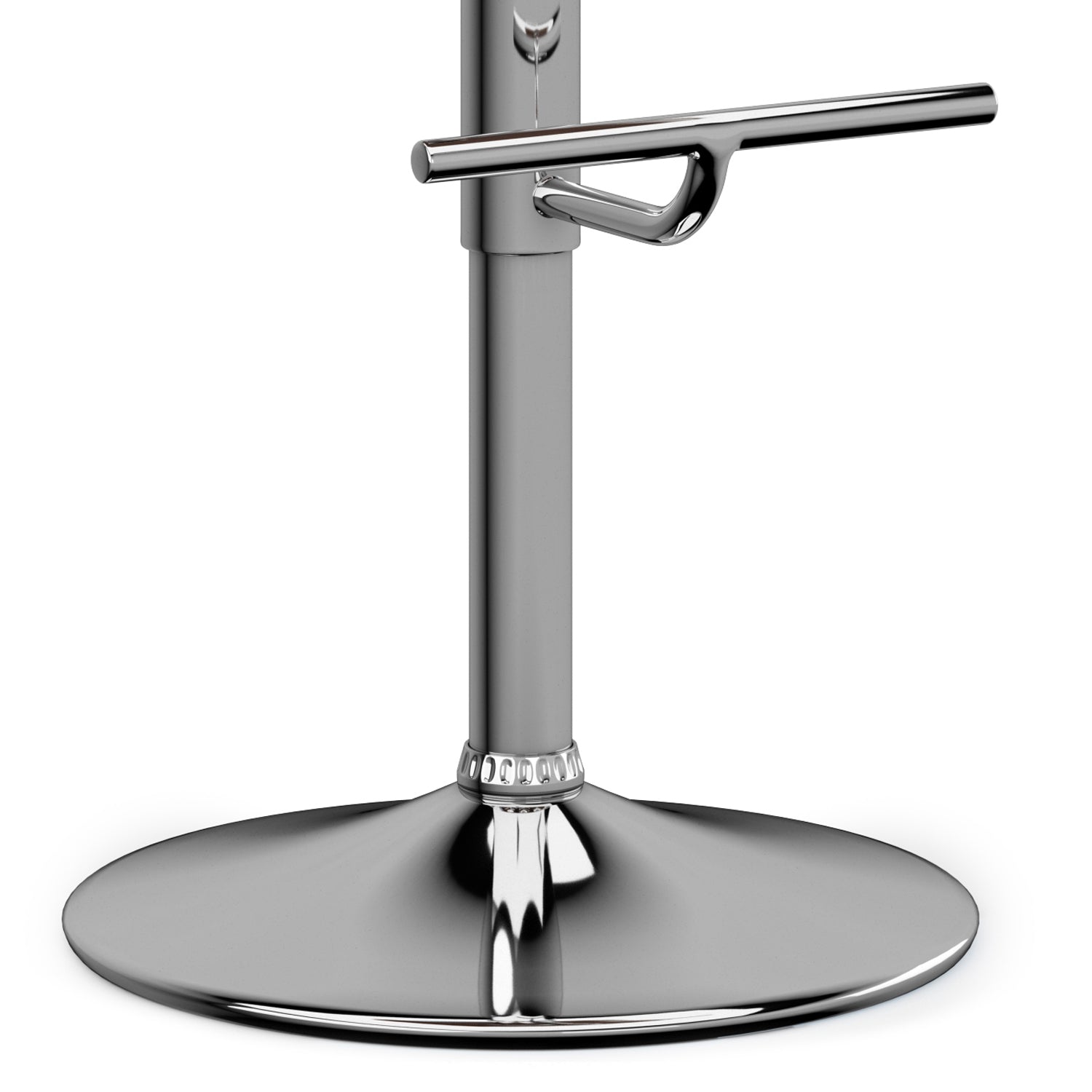 - Base & Functionality: Polished chrome base with integrated footrest, 360° swivel, and smooth gas-lift mechanism to adjust between counter and bar heights.