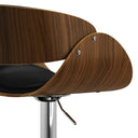 Bring mid-century modern style and everyday comfort to your kitchen, bar, or entertainment space with this versatile adjustable swivel bar stool. Expertly crafted from bentwood plywood and finished in black vegan faux leather, it combines durable materials, smooth gas-lift height adjustment, and a 360° swivel for flexible seating that suits counter- and bar-height surfaces.