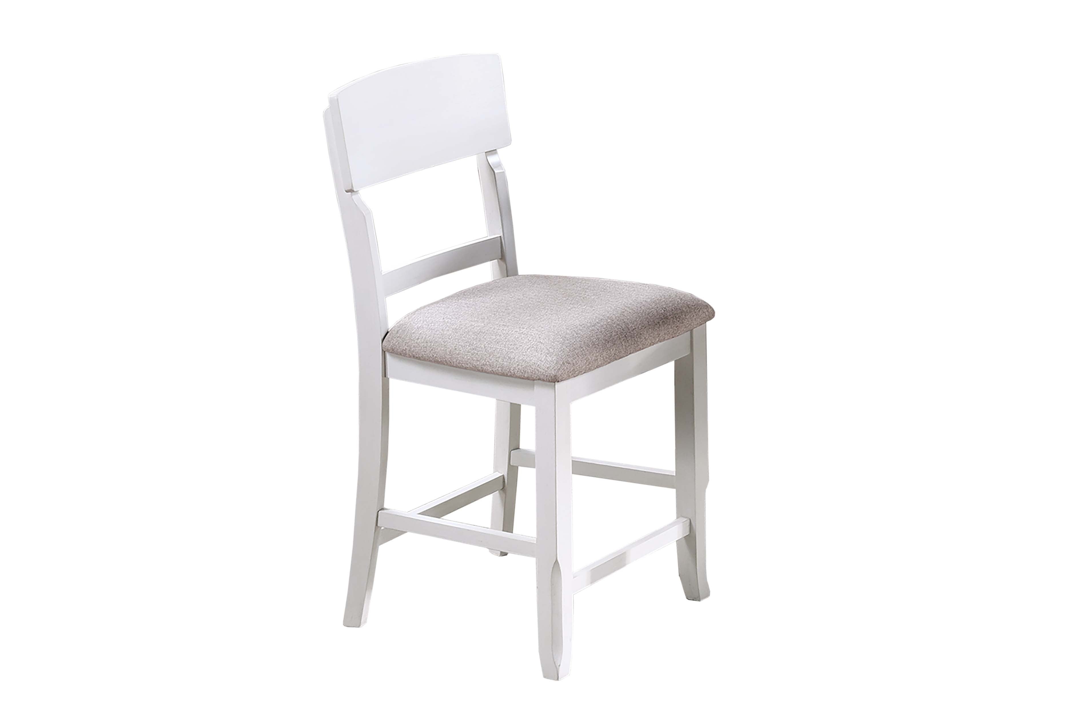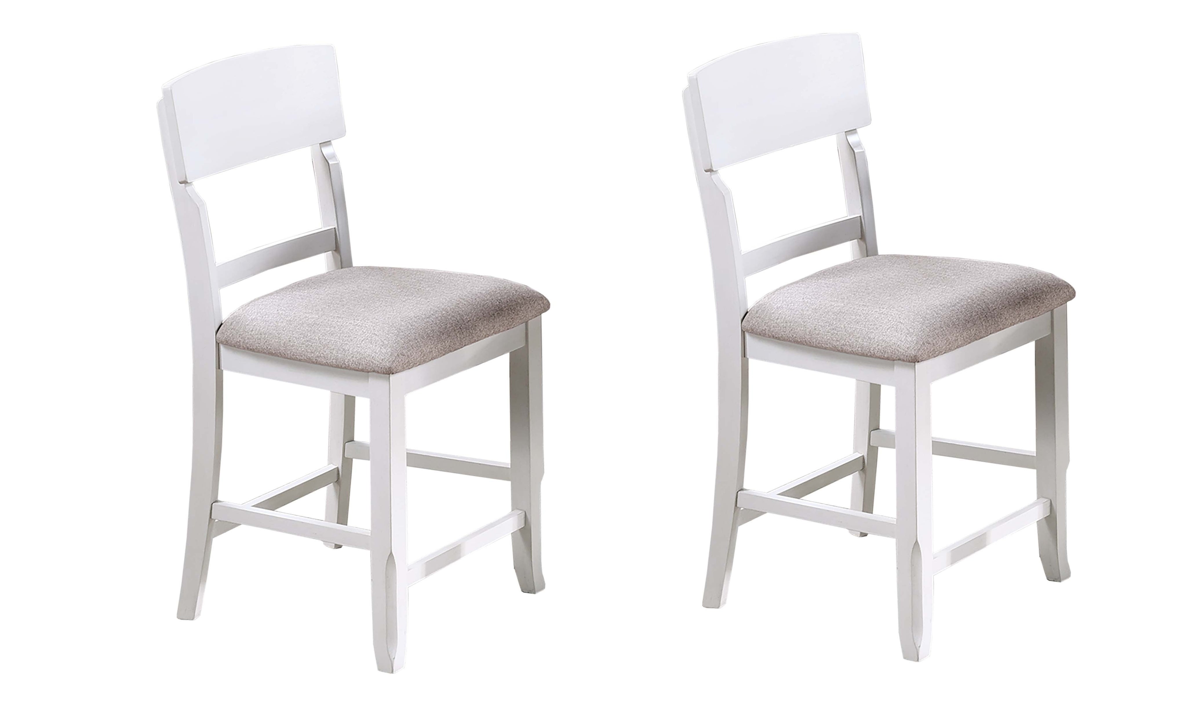 Bring classic charm and everyday comfort to your dining or counter area with this set of two antique-white ladder-back high chairs. Crafted for durability and style, each chair combines a timeless silhouette with cushioned seating to support relaxed meals and lively conversations. The neutral finish and clean lines make these chairs easy to pair with a variety of table styles, while reinforced construction ensures they stand up to regular use.