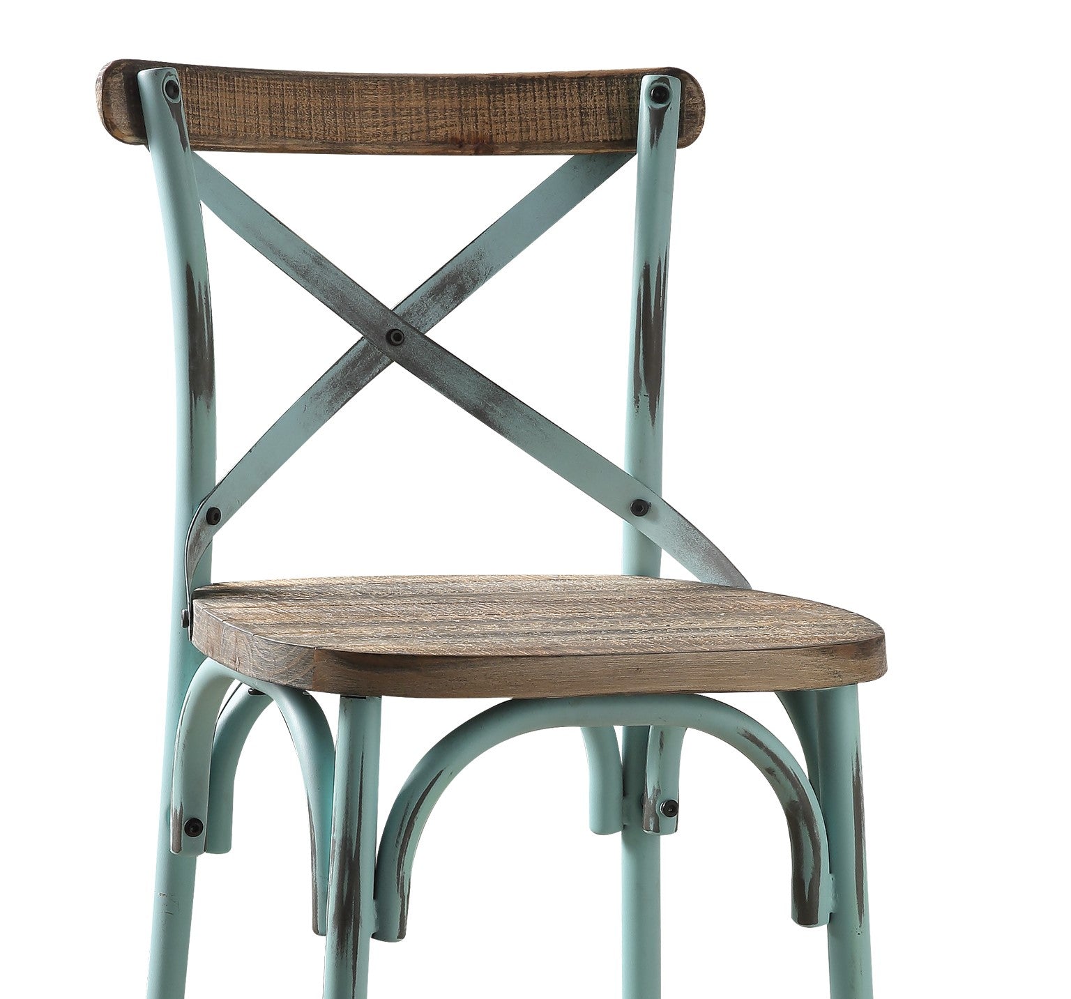 - Finish: Antique turquoise metal frame paired with an antique oak wooden seat for an authentic vintage look