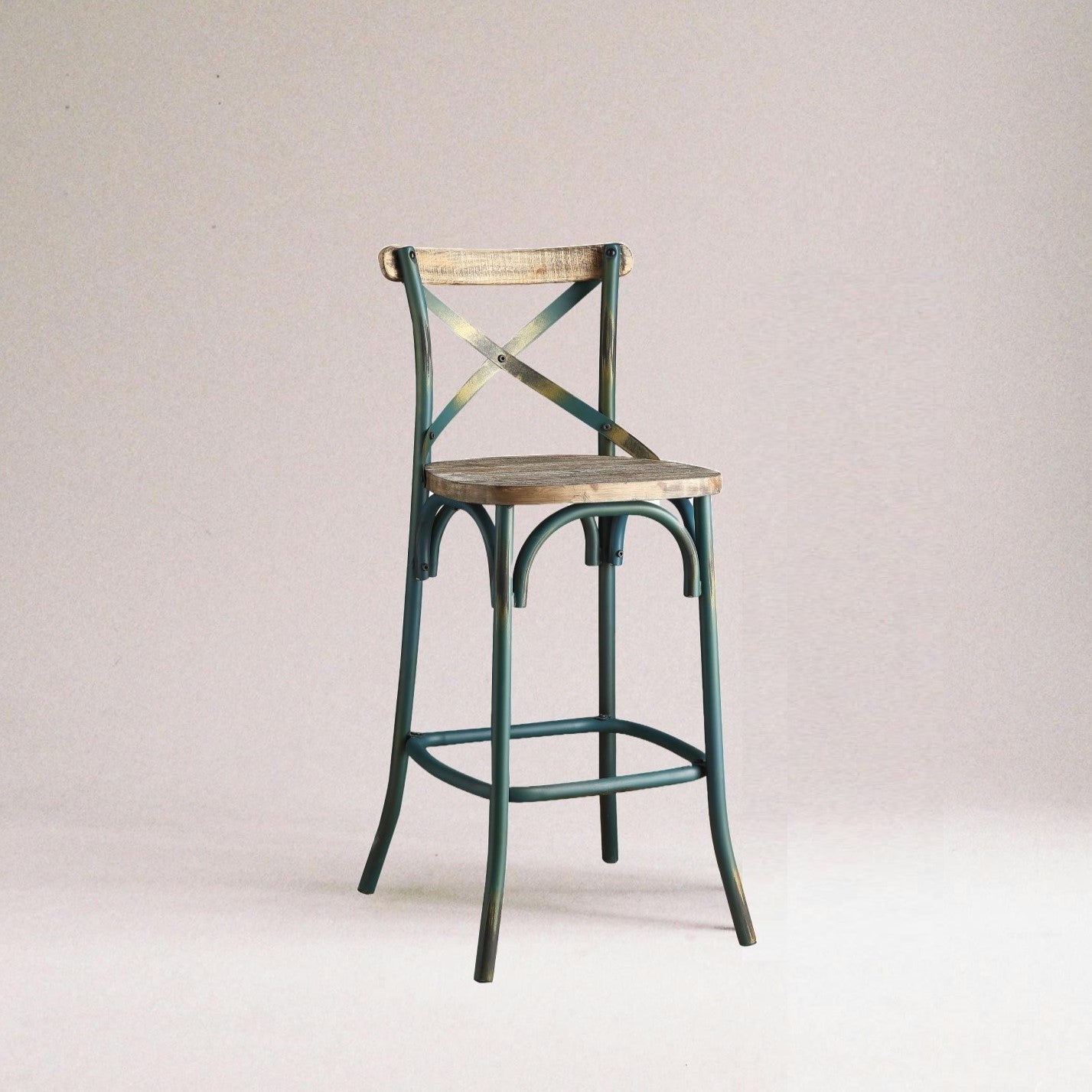 Bring vintage charm and sturdy comfort to your dining or bar area with this Antique Turquoise Finish Metal Frame Bar Chair. Combining distressed metal with a warm wooden seat, its retro silhouette and practical footrest create a stylish focal point while delivering reliable everyday seating for kitchens, home bars, or cafés.