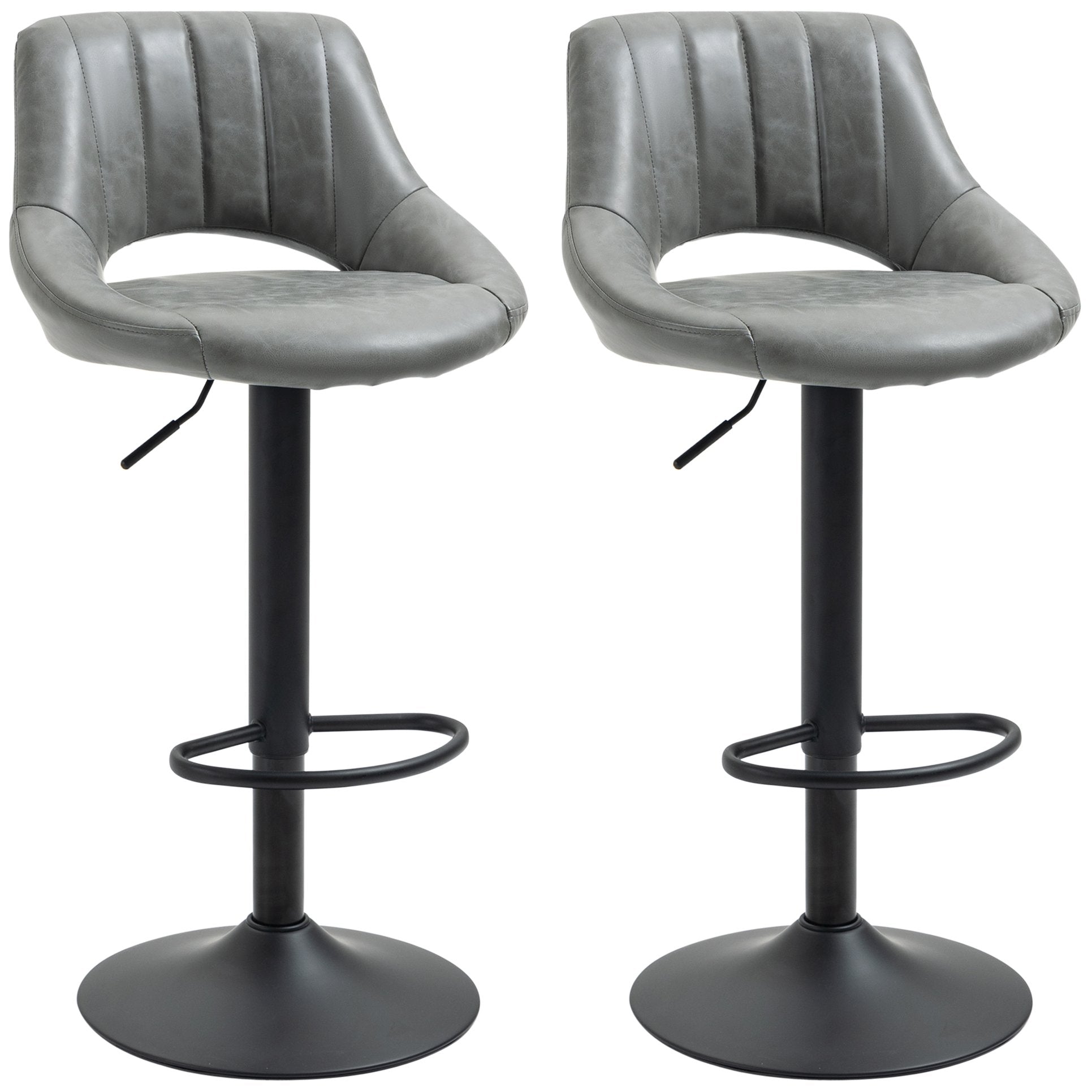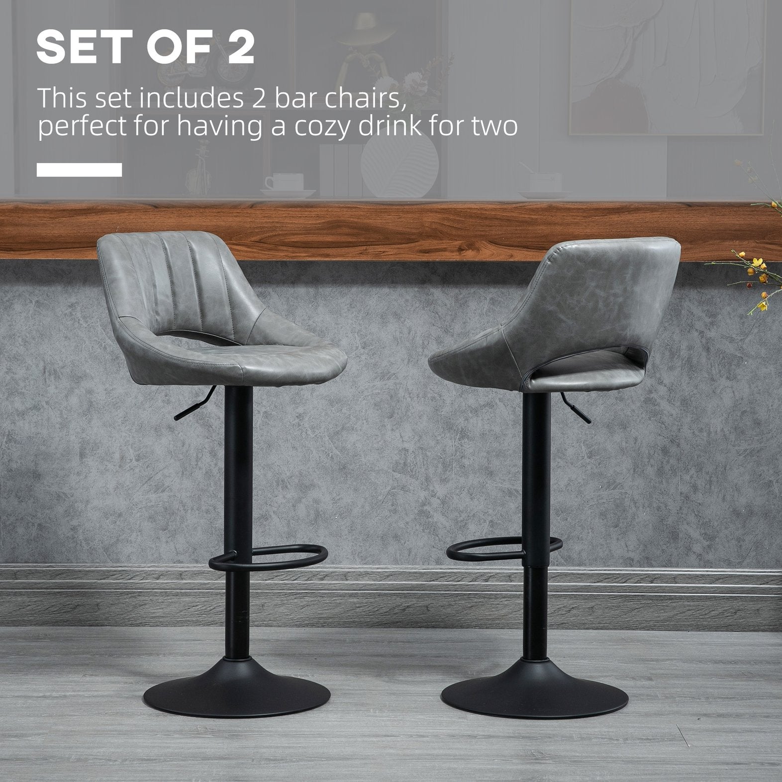 Create a cozy, contemporary seating spot with this pair of gray swivel bar stools—perfect for kitchens, breakfast bars, home bars, or game rooms. Each stool combines soft PU-leather cushioning, a supportive open-back design, and a sturdy metal base to deliver comfort, flexibility, and long-lasting stability for everyday use.