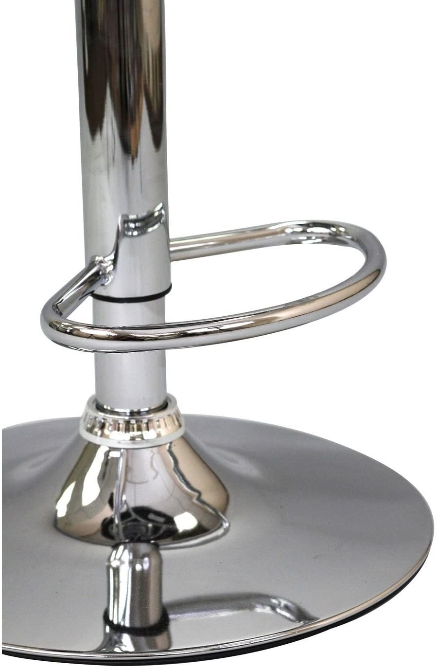 - Construction & materials: MDF seat core with PVC/faux leather upholstery and a metal base/post with bright finish for a retro-modern look