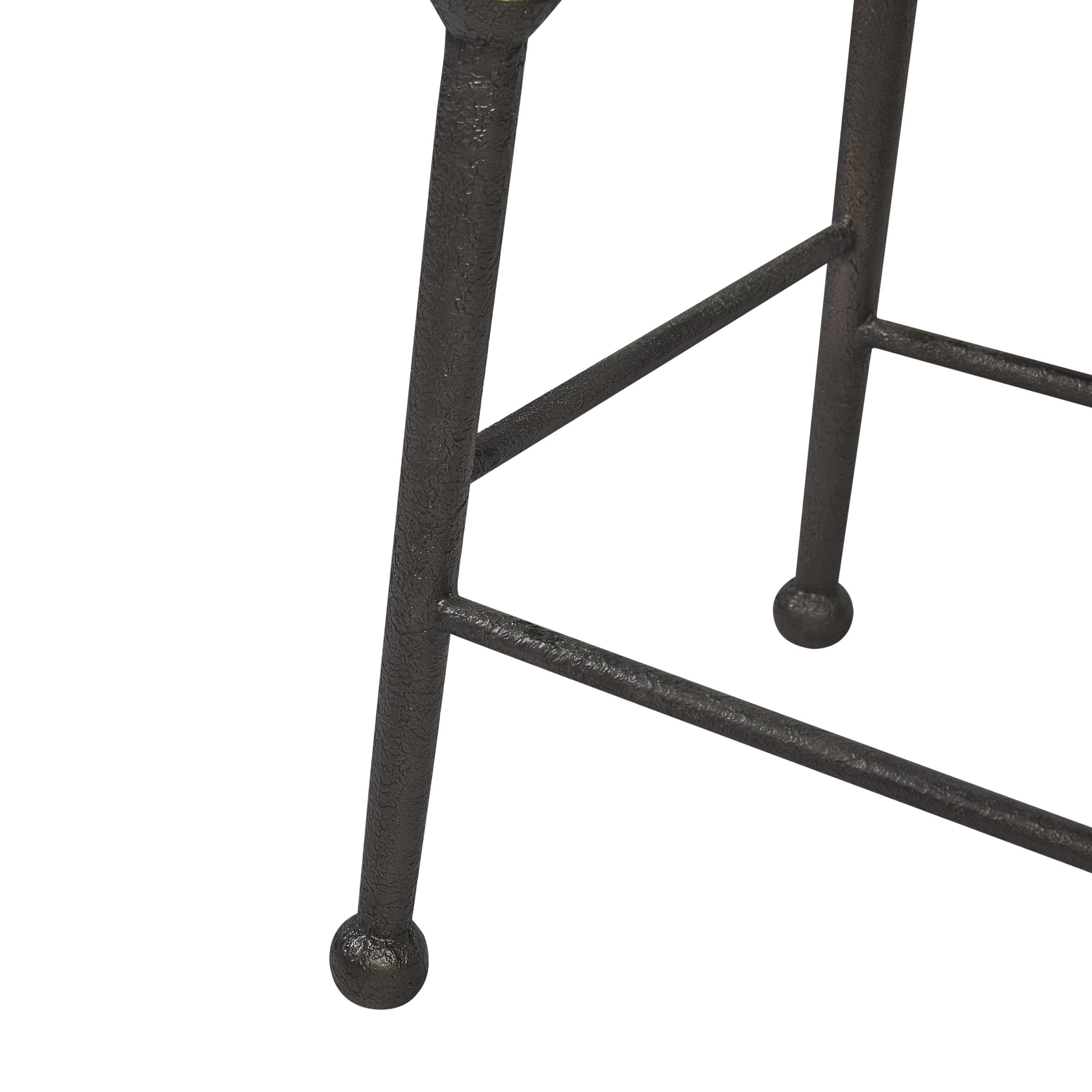 - Industrial Metal Base – Sturdy, hand-forged metal legs with decorative turnings and textured detail.