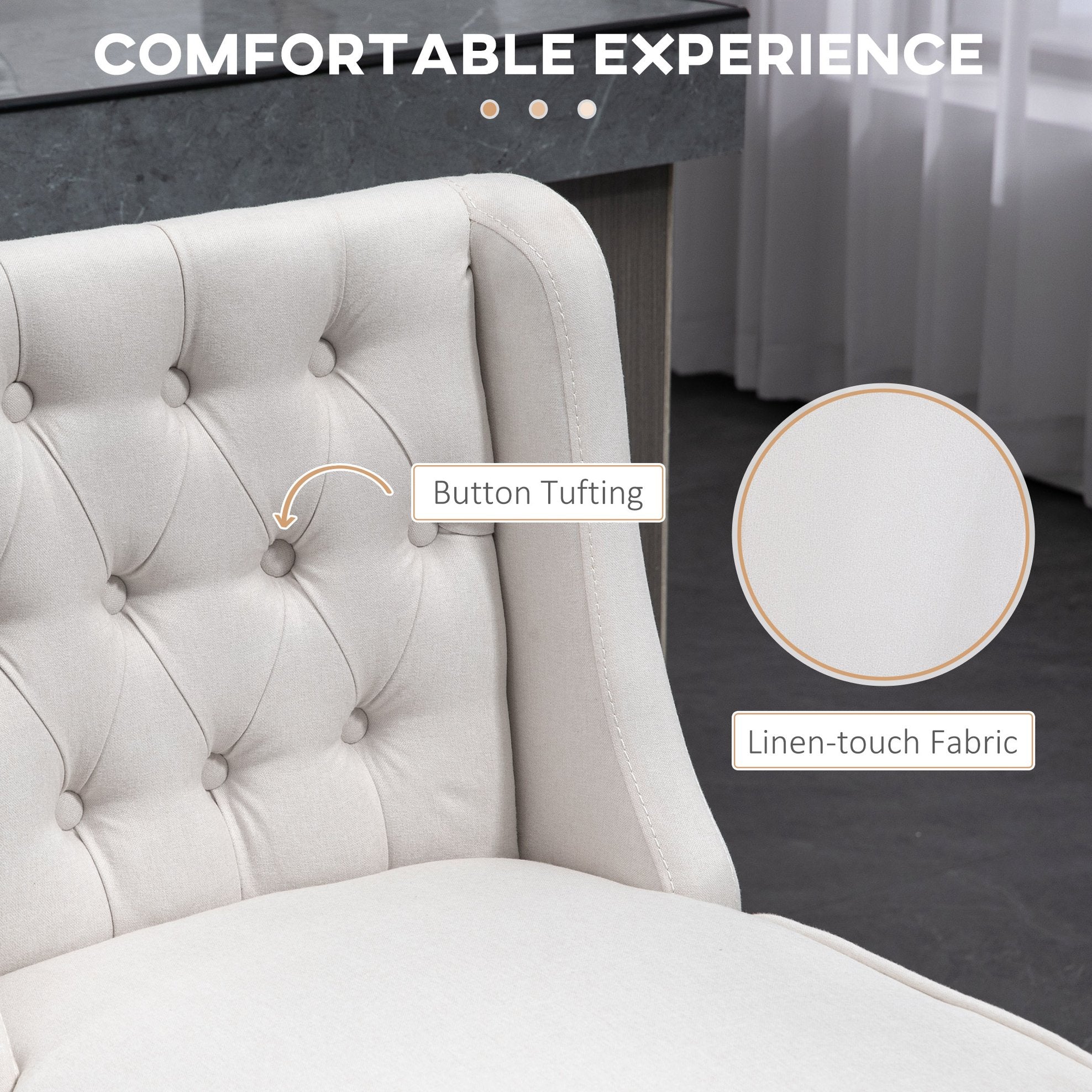 - Comfortable Seating: Thick foam padding and breathable beige fabric offer long-lasting comfort for dining, working, or entertaining.