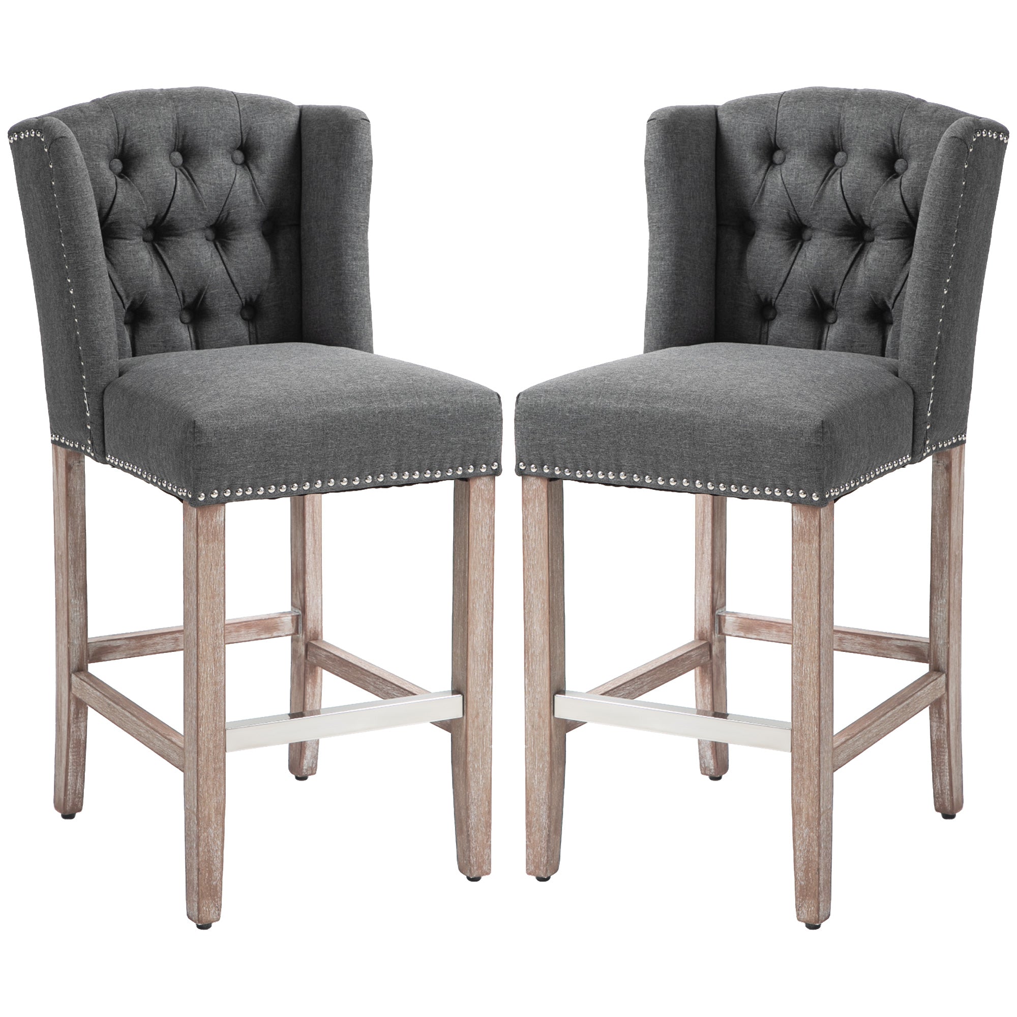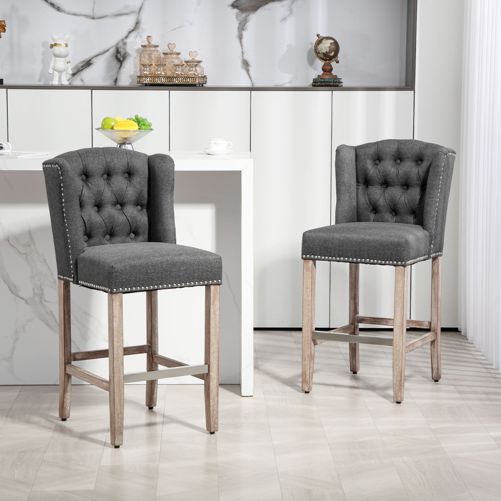 - Stylish Details: Button-tufted wingback-style backs and distressed-finish legs create a vintage, versatile aesthetic that complements many decors.