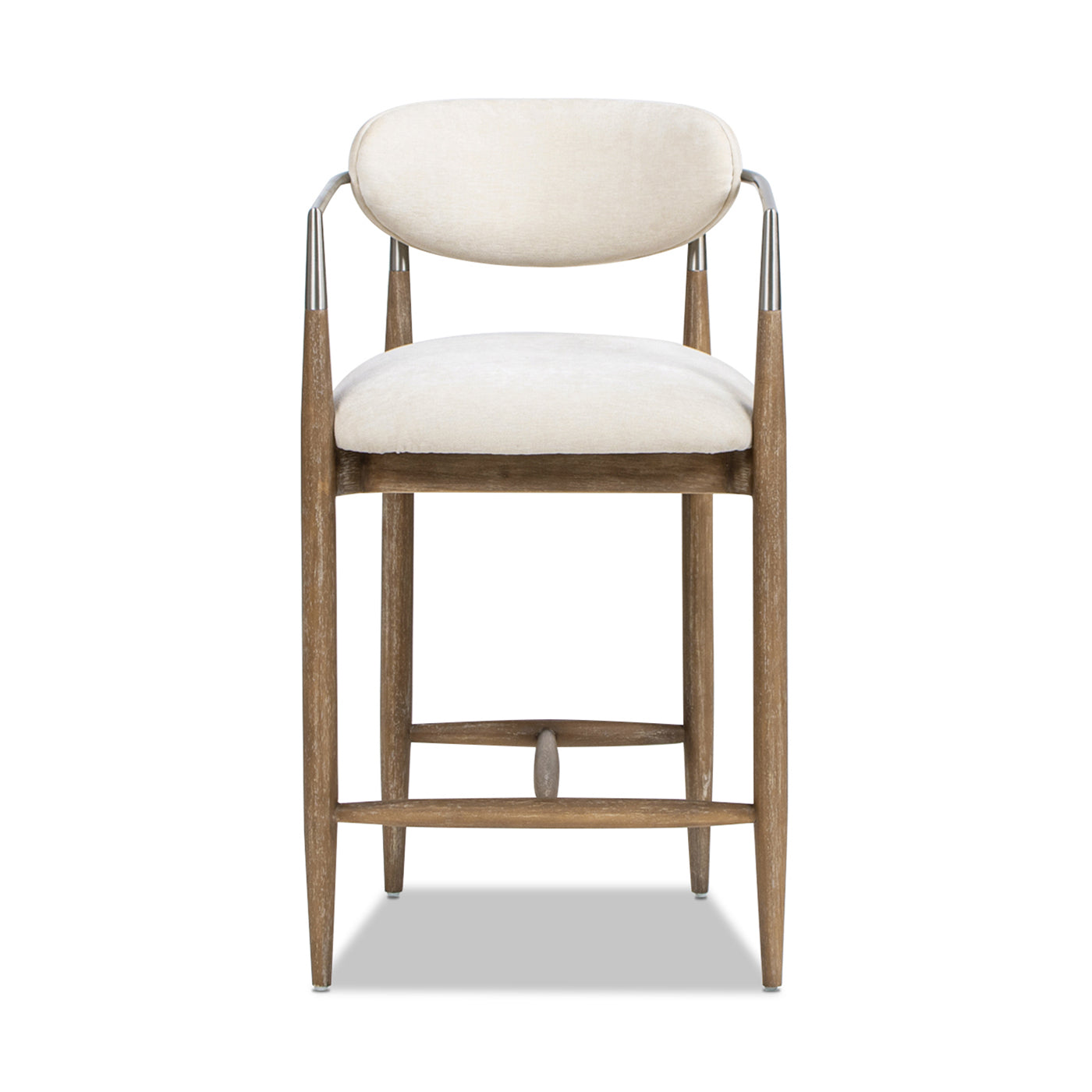 Elevate your kitchen or dining area with the Artemis counter stool — a refined blend of comfort and contemporary design. Upholstered in warm white chenille, this stool pairs plush seating with a solid wood frame and subtle metal accents to create a versatile piece that complements modern and transitional interiors alike.