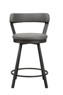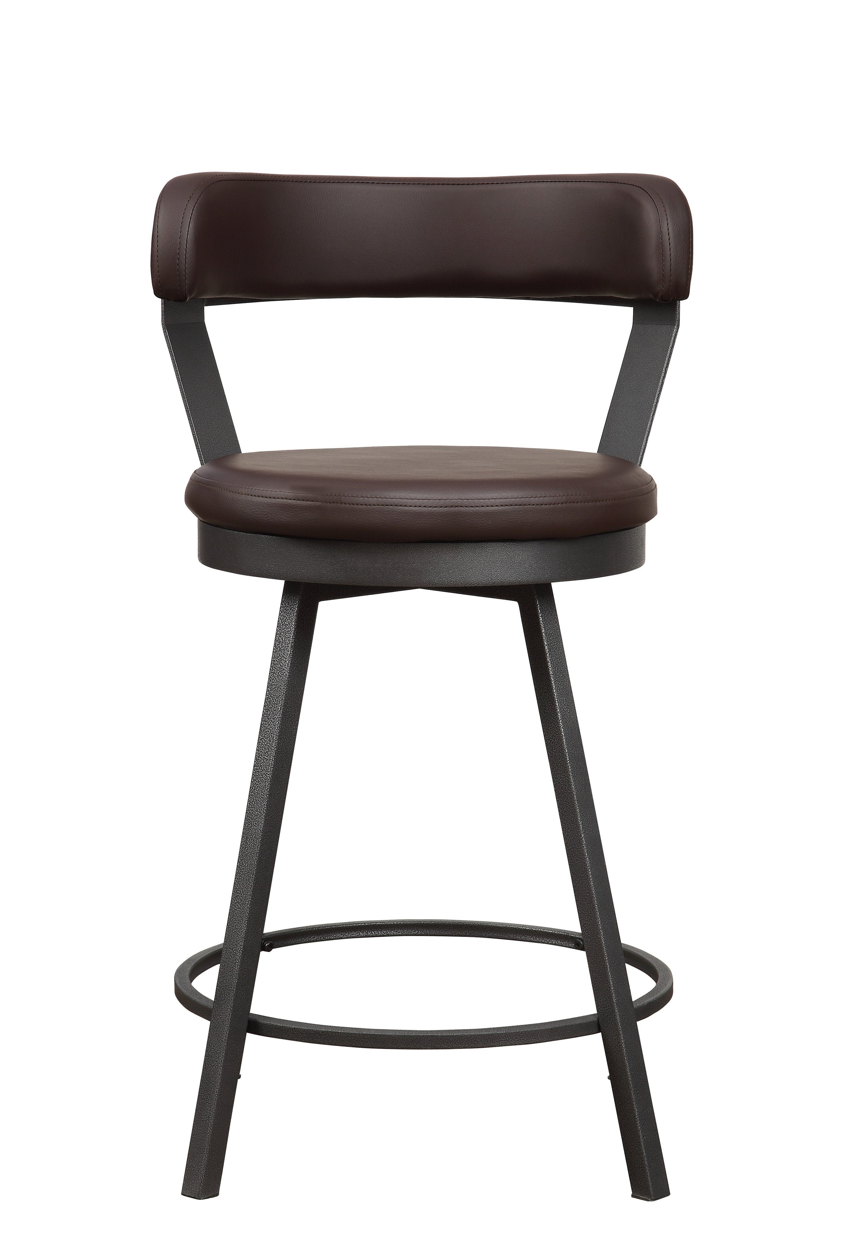Refresh your casual dining area with this sleek, contemporary counter-height chair set from the Appert Collection. Designed for comfort and versatility, each chair combines a sturdy dark gray metal base with a brown faux leather upholstered round seat that swivels 360° for easy conversation and movement. The clean silhouette and neutral tones make these chairs a perfect match for modern kitchens, breakfast nooks, or home bars.