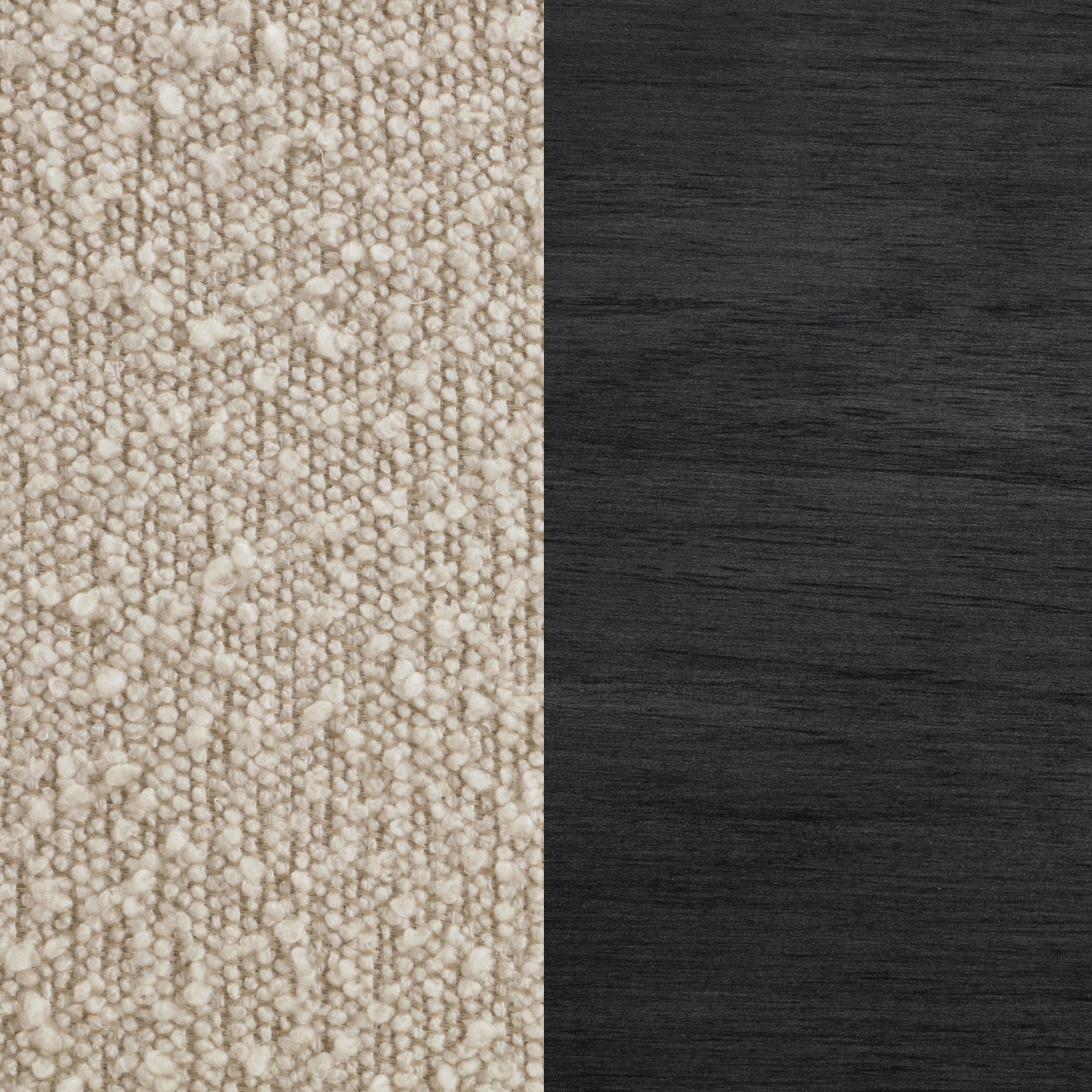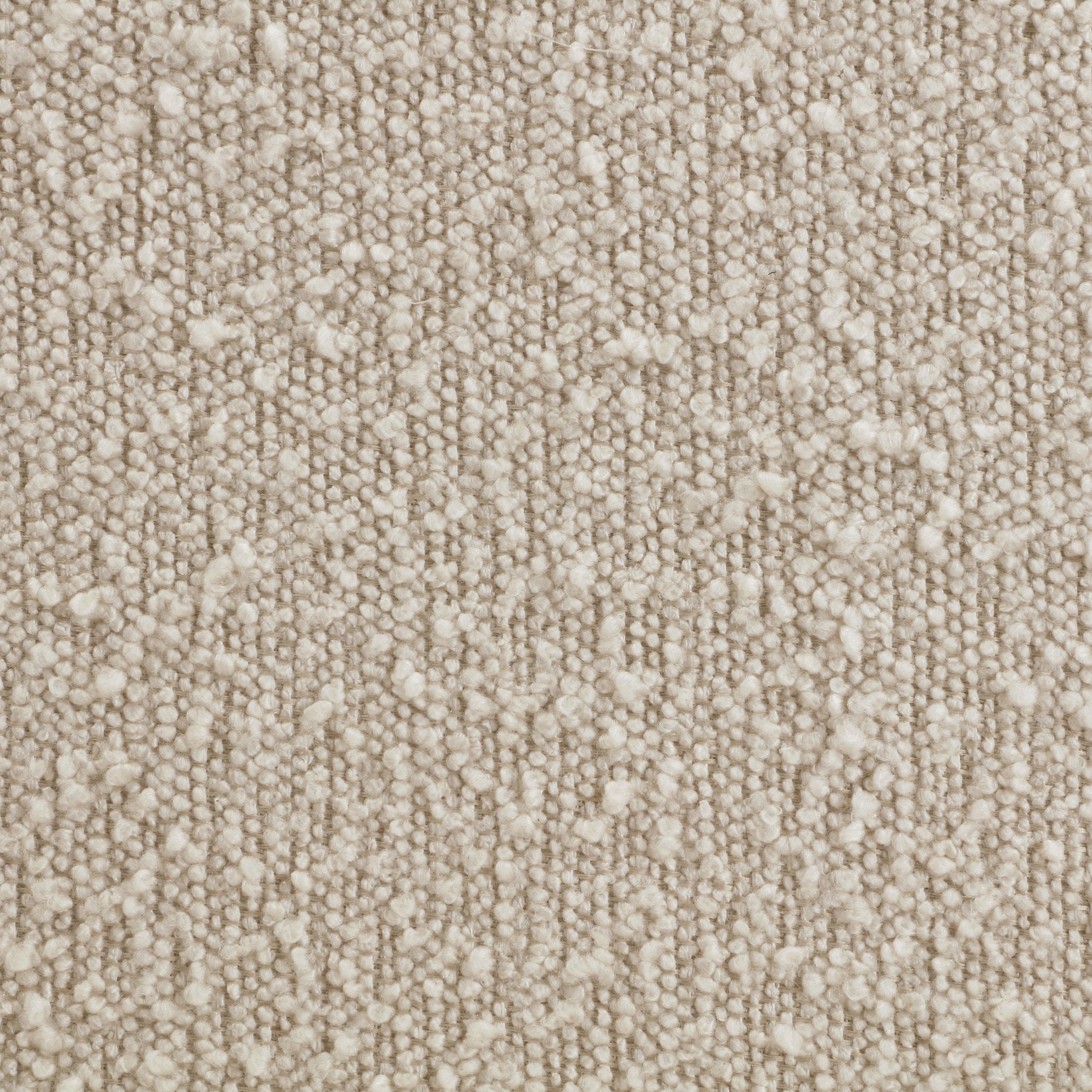 - Upholstery: Soft, textured bouclé fabric in a warm beige tone for tactile comfort and visual warmth