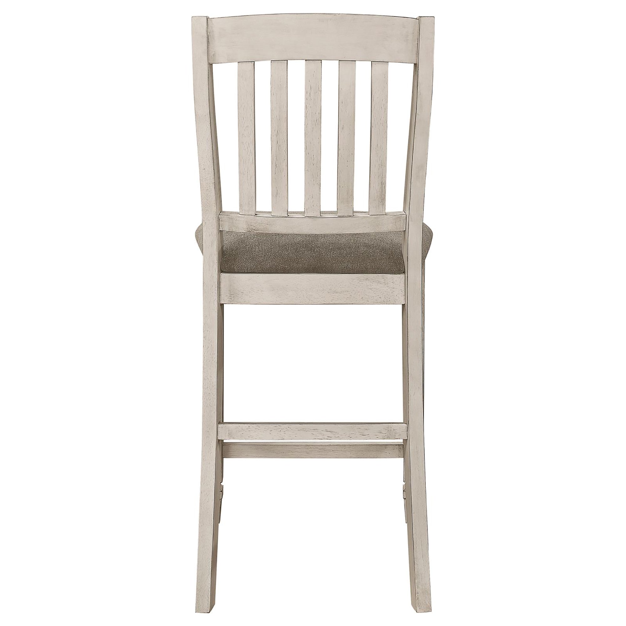 Bring a touch of modern farmhouse romance to your counter seating with this set of two counter height chairs. The rustic cream finish and fossil-grey upholstered seats create a warm, inviting look, while the gently curved back and bent slat design deliver comfortable support for breakfasts, casual meals, or relaxed conversations.