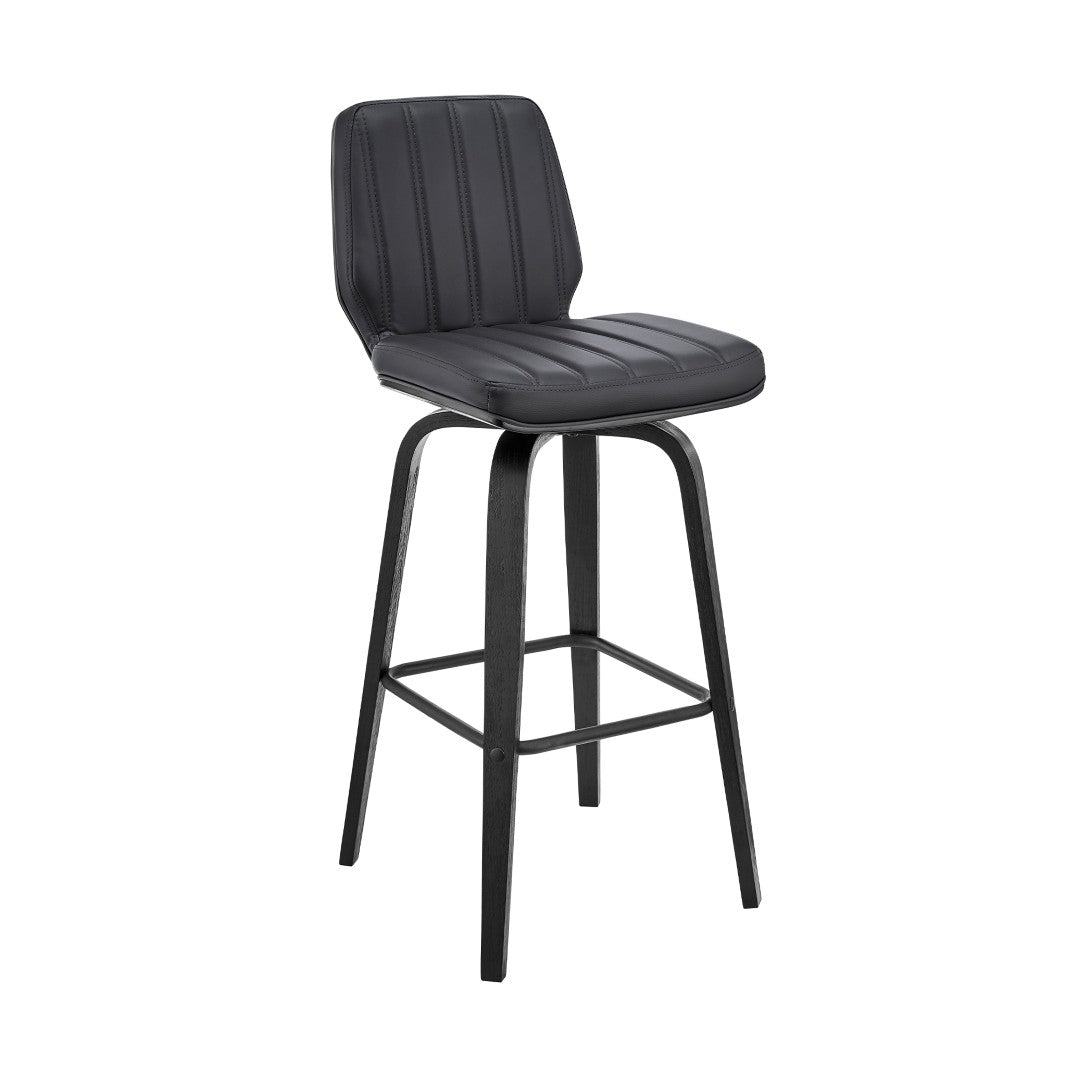 Give your kitchen, home bar, or dining nook an instant style and comfort upgrade with this modern swivel bar stool. Upholstered in soft gray faux leather and paired with black wood legs, it combines contemporary looks with practical features—360° swivel, durable construction, and easy assembly—making it a versatile choice for everyday use.