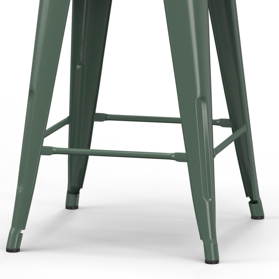 Add a touch of mid-century industrial charm to your kitchen, bar, or casual dining area with this set of two Rayne counter-height stools. Crafted for everyday use, the stools combine durable metal construction with a stylish deep sage green finish, offering both form and function—lightweight for easy moving, yet reinforced for stability and long-lasting comfort.