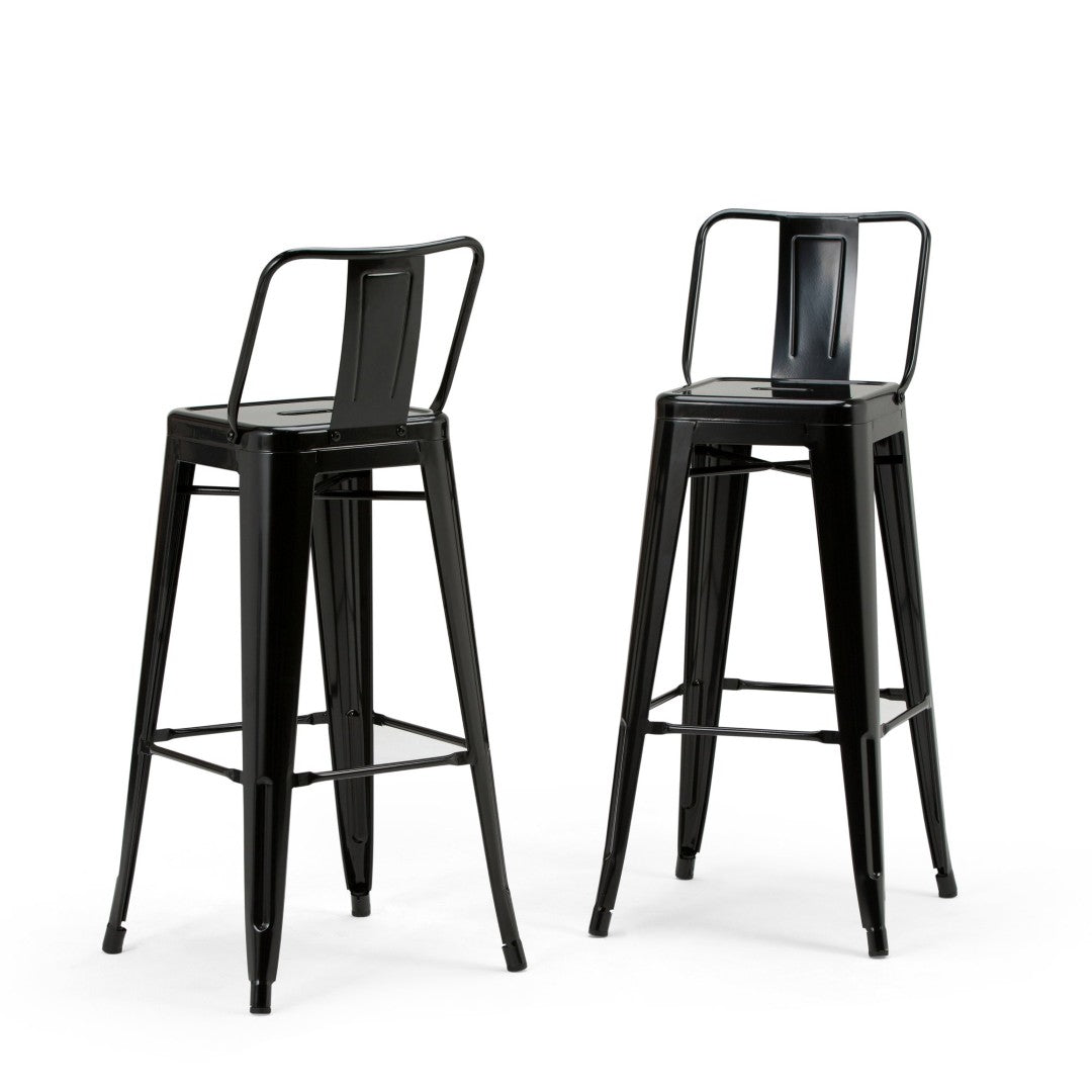 Bring industrial-chic style and dependable comfort to your home with this set of two Rayne metal bar stools. Rugged yet refined, these stools combine durable iron construction with a sleek powder-coated finish, making them a versatile choice for kitchen islands, home bars, game rooms, or commercial seating. Thoughtful details—like a supportive curved back, footrest, and protective floor glides—ensure lasting comfort and protection for your floors.