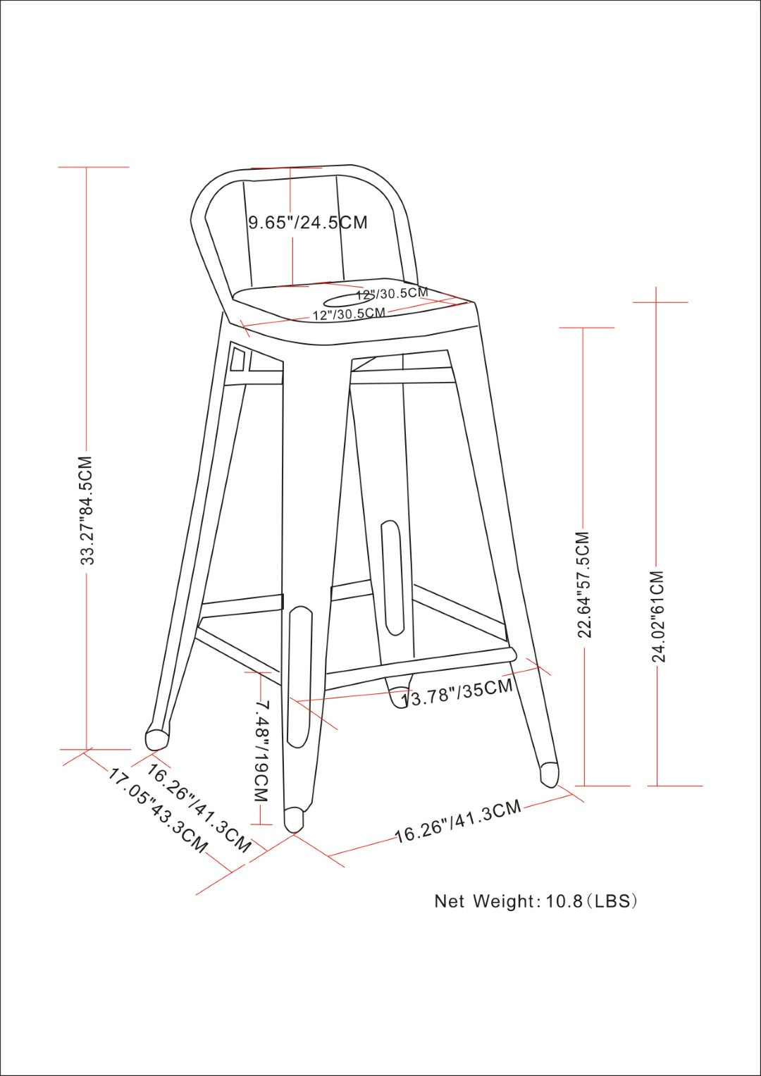 - Dimensions (each): 16.5" D x 16.5" W x 33.5" H (Seat height: 24") — Product listing also cites 17.32" L x 17.32" W x 40.94" H; please verify measurements to match your space.