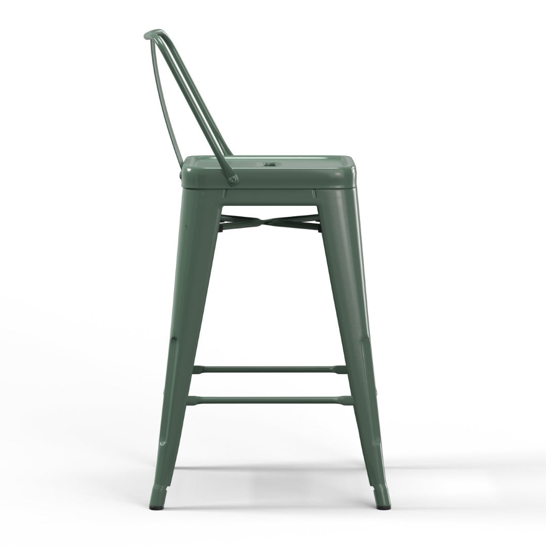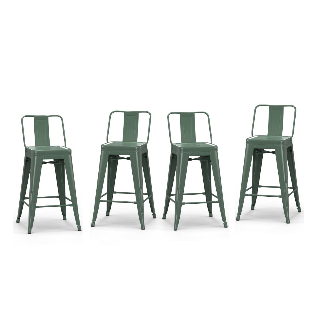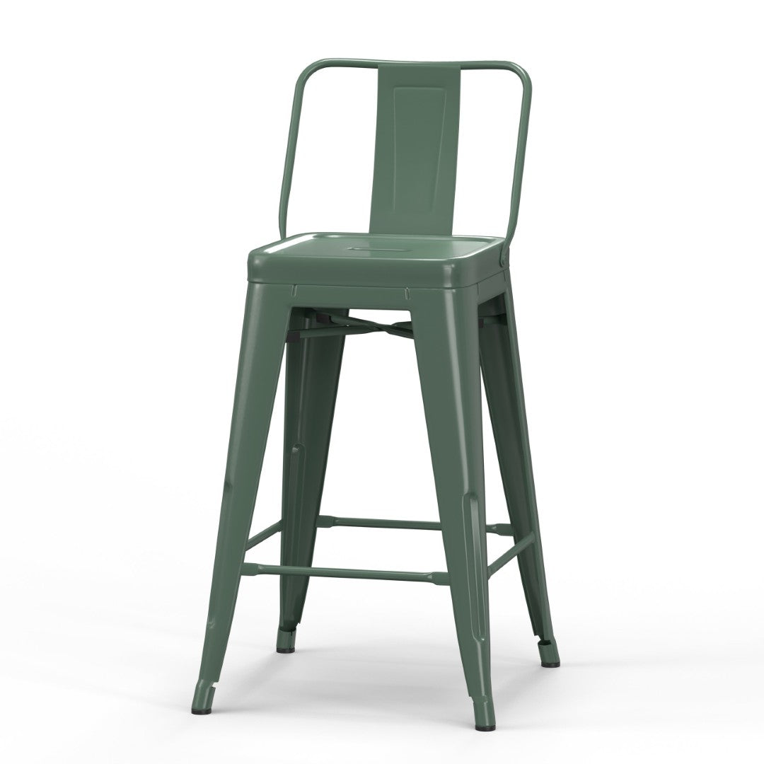 Bring timeless mid-century industrial style to your kitchen, bar, or living space with this set of four Rayne counter-height stools in a rich Deep Sage Green. Crafted for everyday use, each stool pairs sturdy metal construction with a comfortable curved back and footrest for lasting support and style in compact or open-plan interiors.