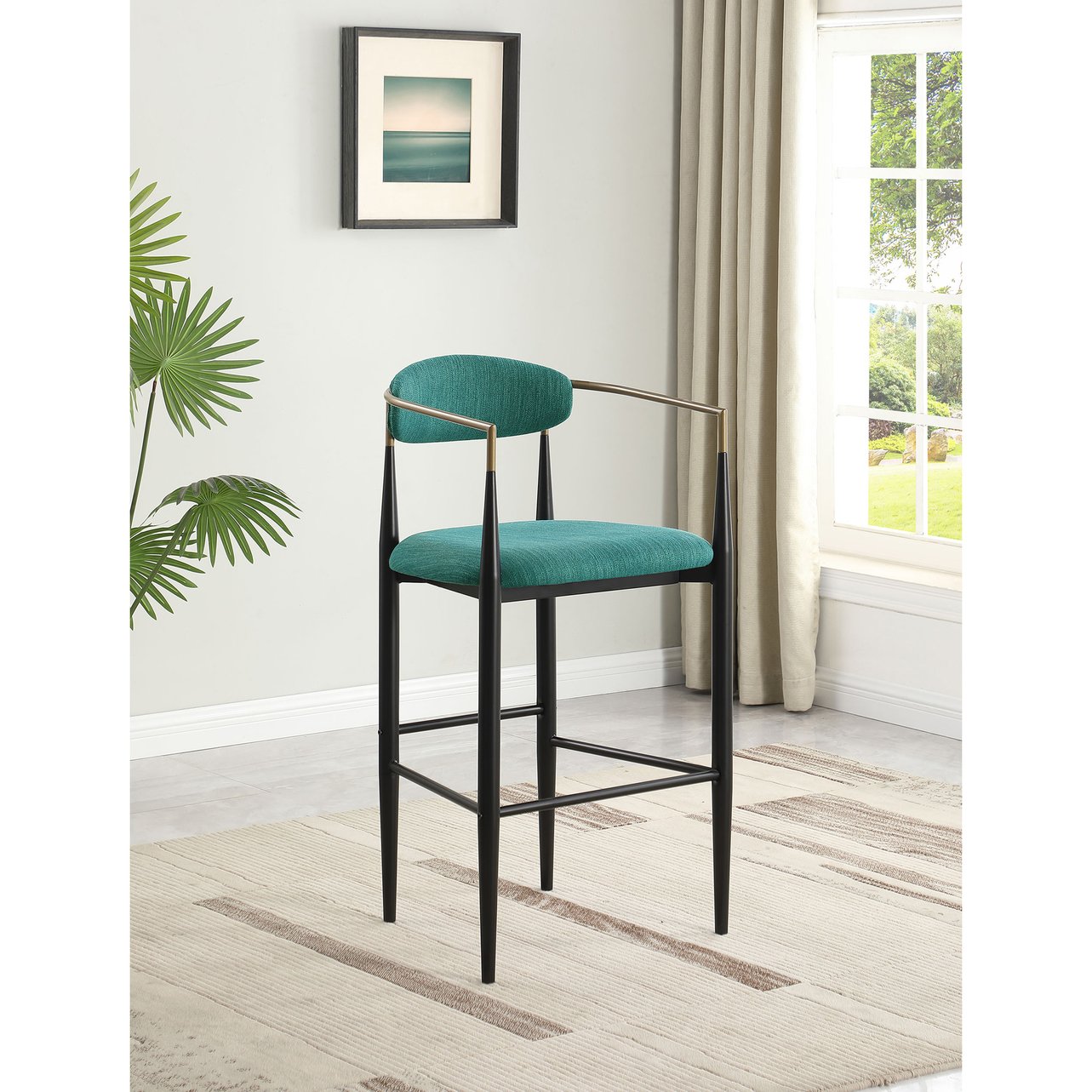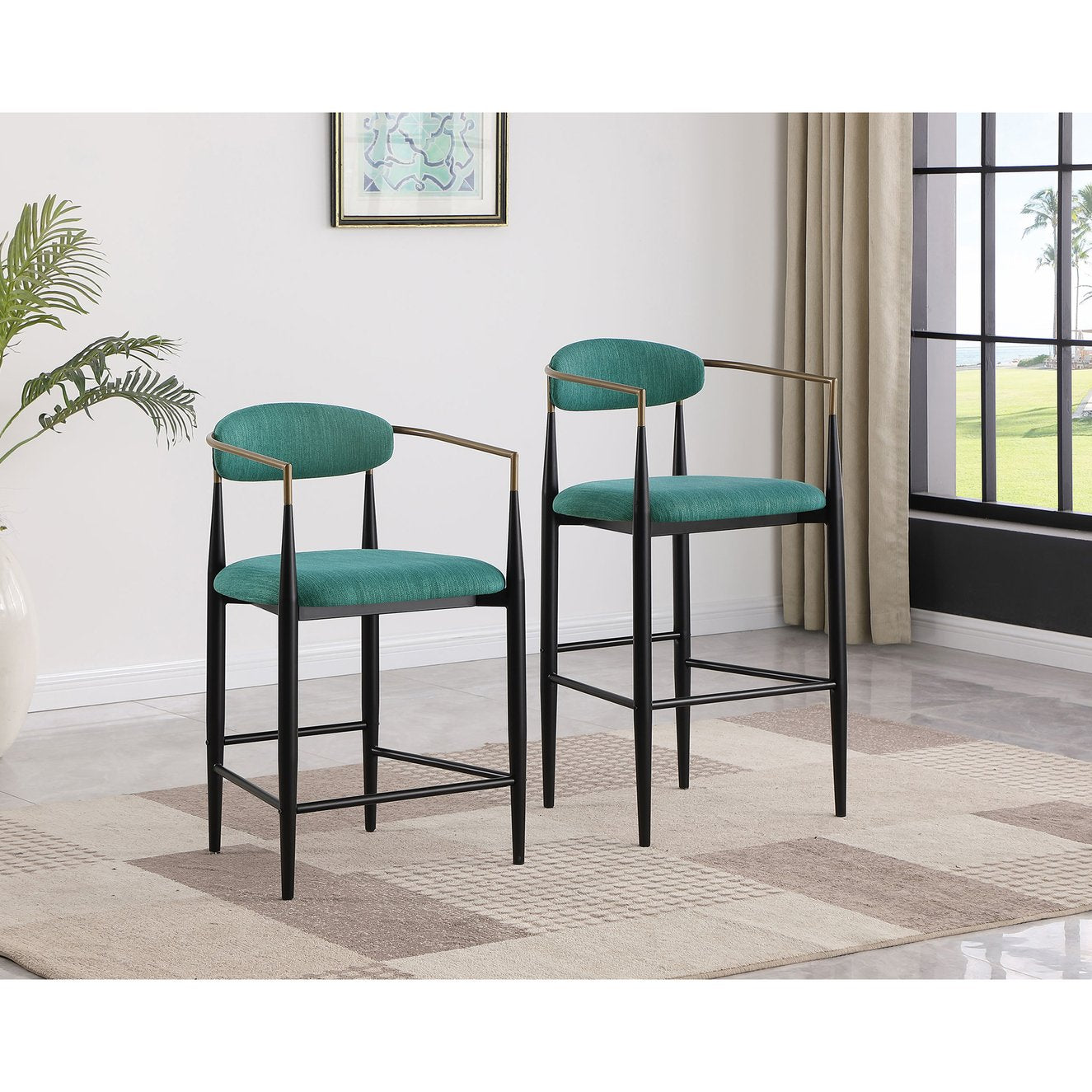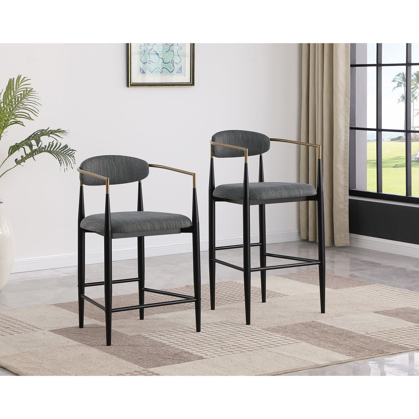 Elevate your kitchen or home bar with this set of two bar-height stools that blend mid-century modern lines with contemporary comfort. Designed for everyday use and stylish entertaining, these stools feature cushioned fabric seats, supportive backs, and a tapered black base with an integrated footrest for relaxed seating during meals or cocktail hour.