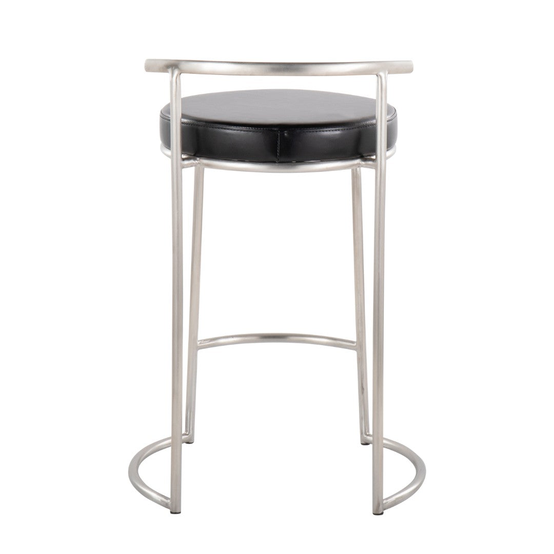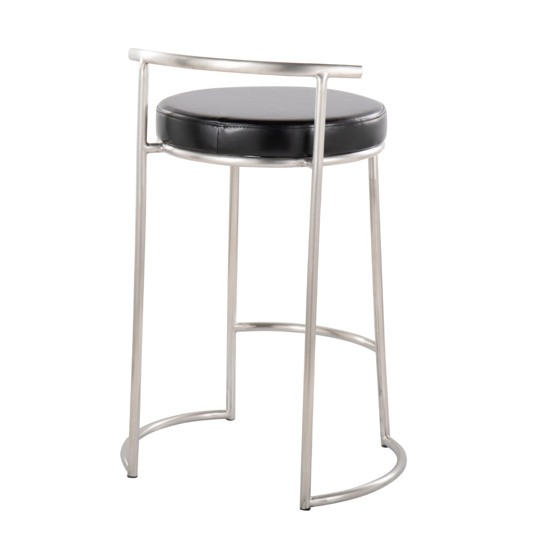 Add modern flair and comfortable seating to your kitchen or bar area with this pair of Round Fuji counter stools. Clean lines, a round frame and a plush padded seat combine contemporary style with everyday comfort, while a stainless steel base keeps the look light and durable. These fixed-height stools are ideal for casual dining, entertaining, or as extra seating in compact spaces.
