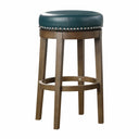 Bring timeless transitional style and everyday versatility to your dining area or kitchen with this set of two round swivel stools. Each stool combines a comfortable 360-degree swivel seat upholstered in black faux leather with classic nailhead trim and a warm brown solid wood frame, delivering both visual appeal and practical function for casual dining, islands, or breakfast nooks.