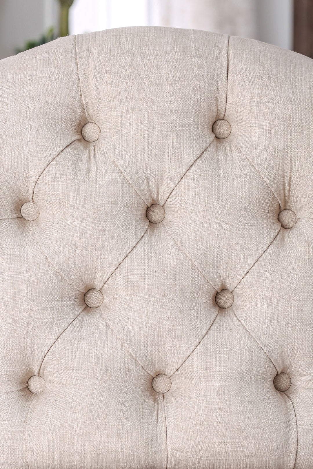 - Upholstery: Beige linen-like fabric for a neutral, versatile finish