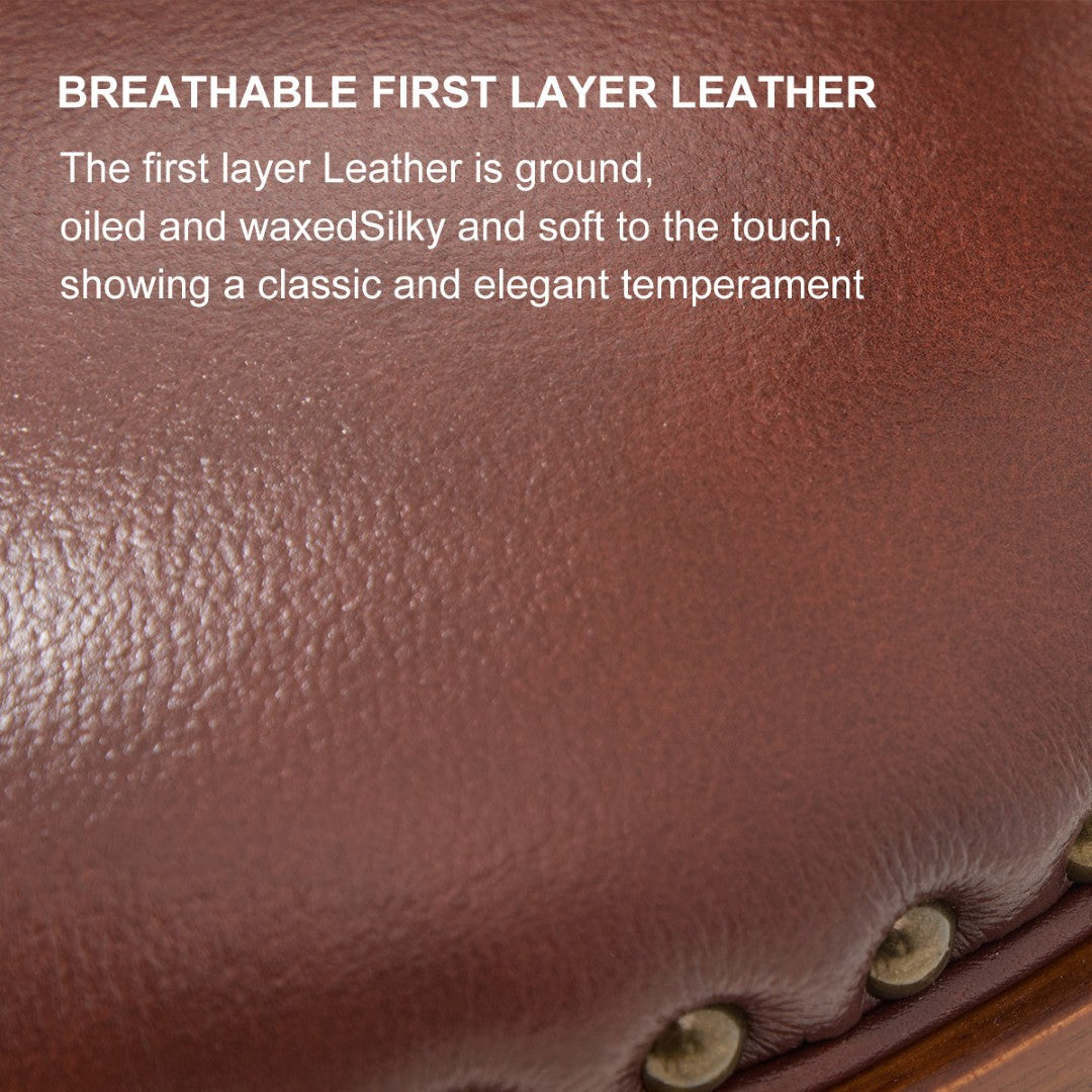 - Premium materials: Cow-top leather seat offers a sophisticated, durable surface; solid hardwood legs with a brown finish provide stability and natural grain beauty.