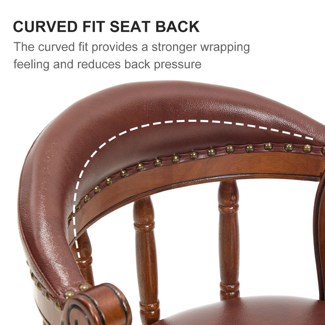 Bring classic farmhouse charm and everyday comfort to your kitchen or home bar with this swivel bar stool. Designed for durability and ease of use, it pairs a contoured cow-top leather seat with a solid wood frame to create a warm, inviting look that suits casual dining areas, pubs, and commercial spaces alike.