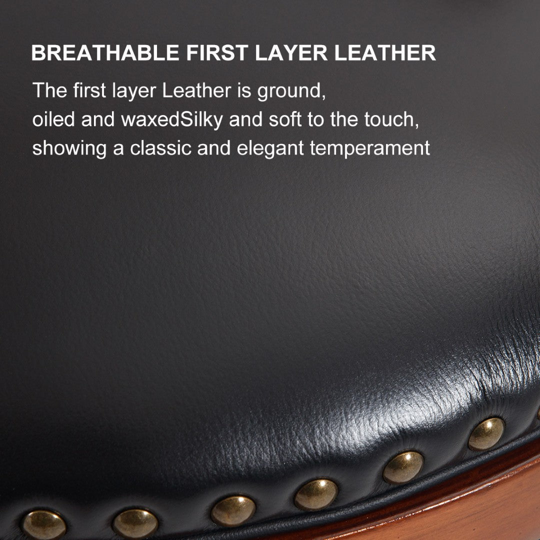 - 【The Material of the bar stools】Seat surface with cow top lather Upholstered.Filled with high-density sponge,curved fit backrest, soft and comfortable.Wood frame and backrest.