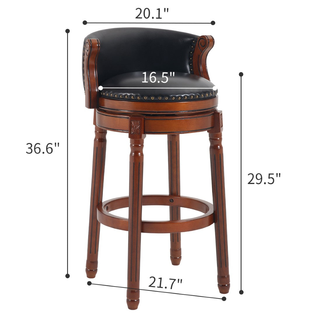 Enjoy modern comfort and rustic charm with this swivel bar stool designed for kitchen islands, home bars, and casual dining spaces. Upholstered in black cow-top leather and supported by a solid wood frame, it blends durability with a stylish silhouette and offers easy assembly for quick use.