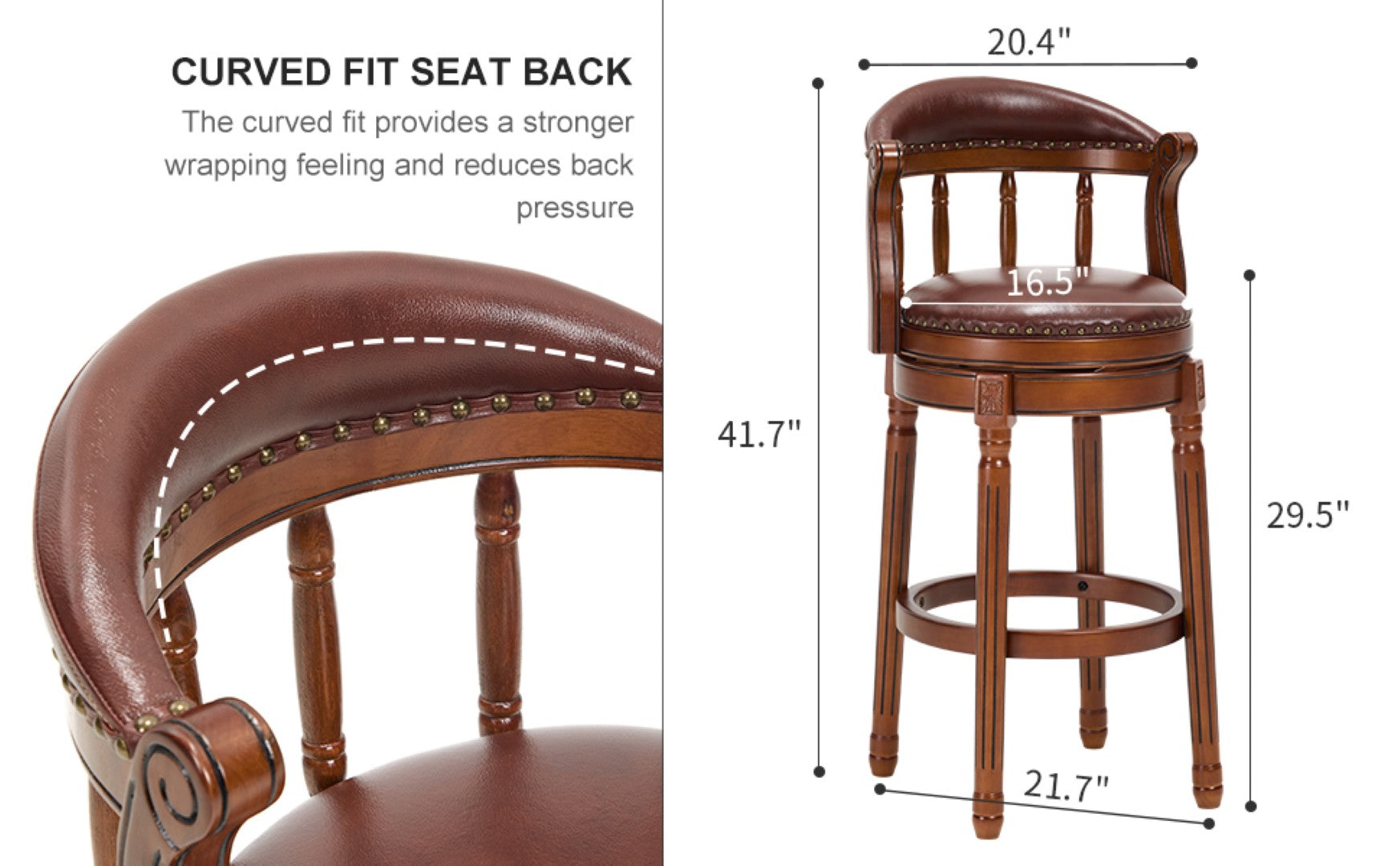 - Seat height: 29.5" — ideal for standard bar-height counters