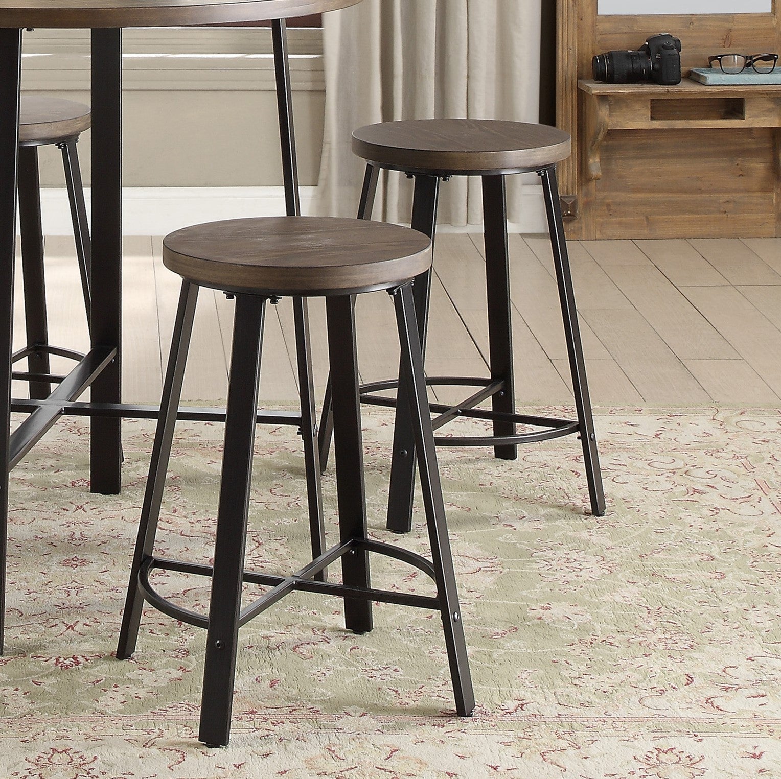 Bring industrial charm and compact comfort to your kitchen or breakfast nook with this Set of 2 counter-height stools. Designed with a burnished pine seat and a durable gray metal frame, these stools pair rustic warmth with sturdy, streamlined construction—ideal for casual dining, bar seating, or extra guest seating in smaller spaces.