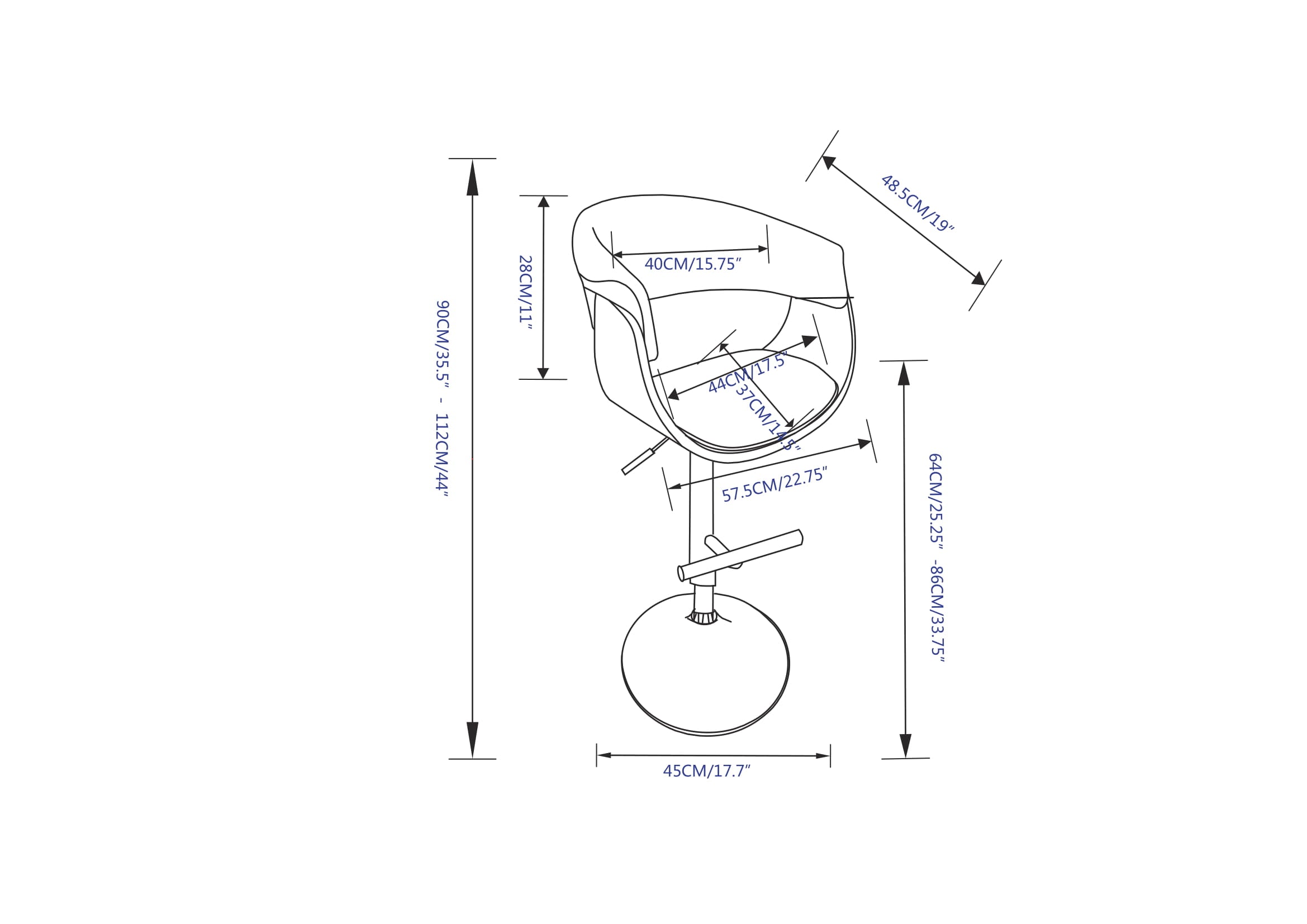 - Adjustability: Gas lift mechanism allows easy height adjustment from counter to bar height (35.75" to 44" H).