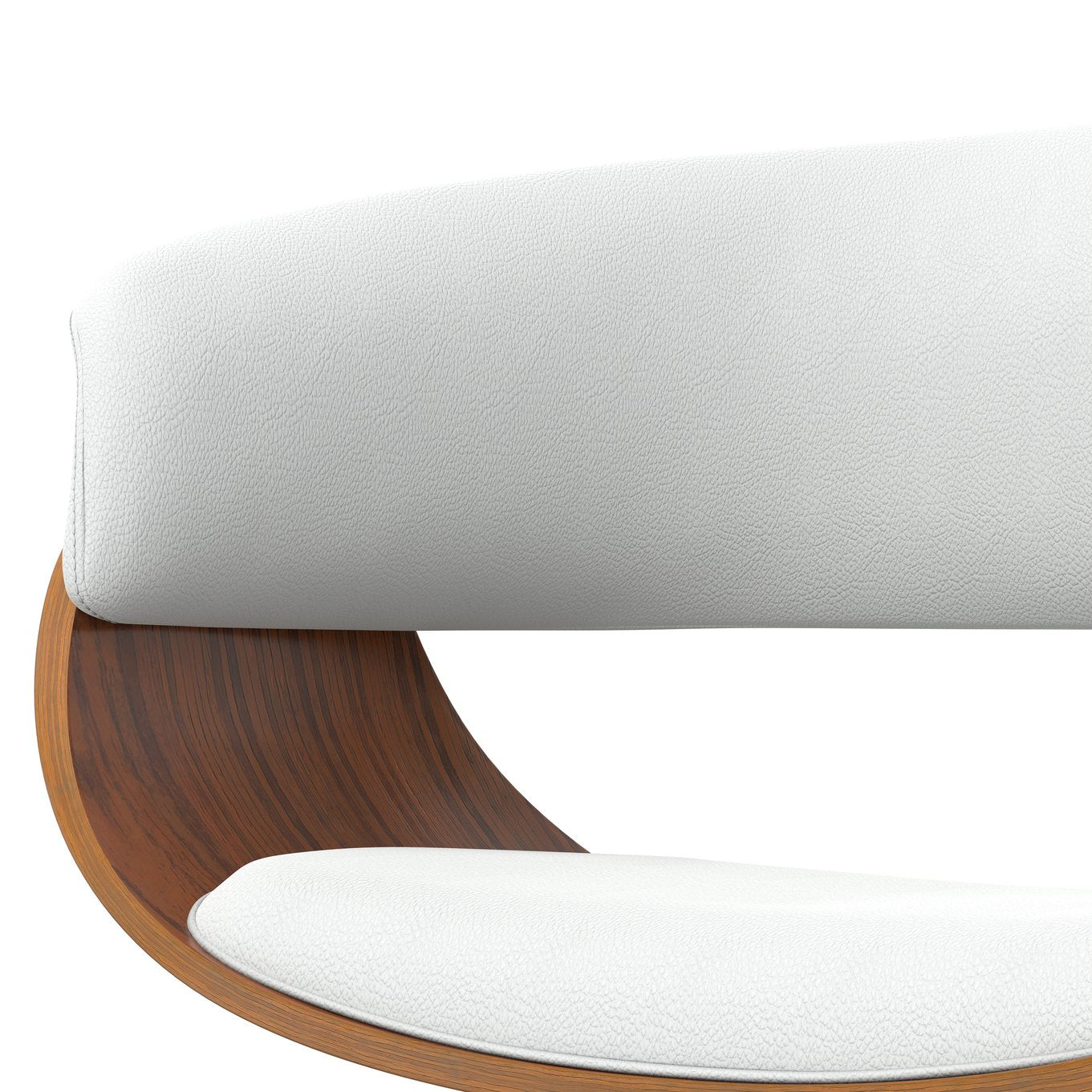 - Mid Century Modern styling includes comfortable curved padded seat and seat back, walnut veneer on bentwood frame