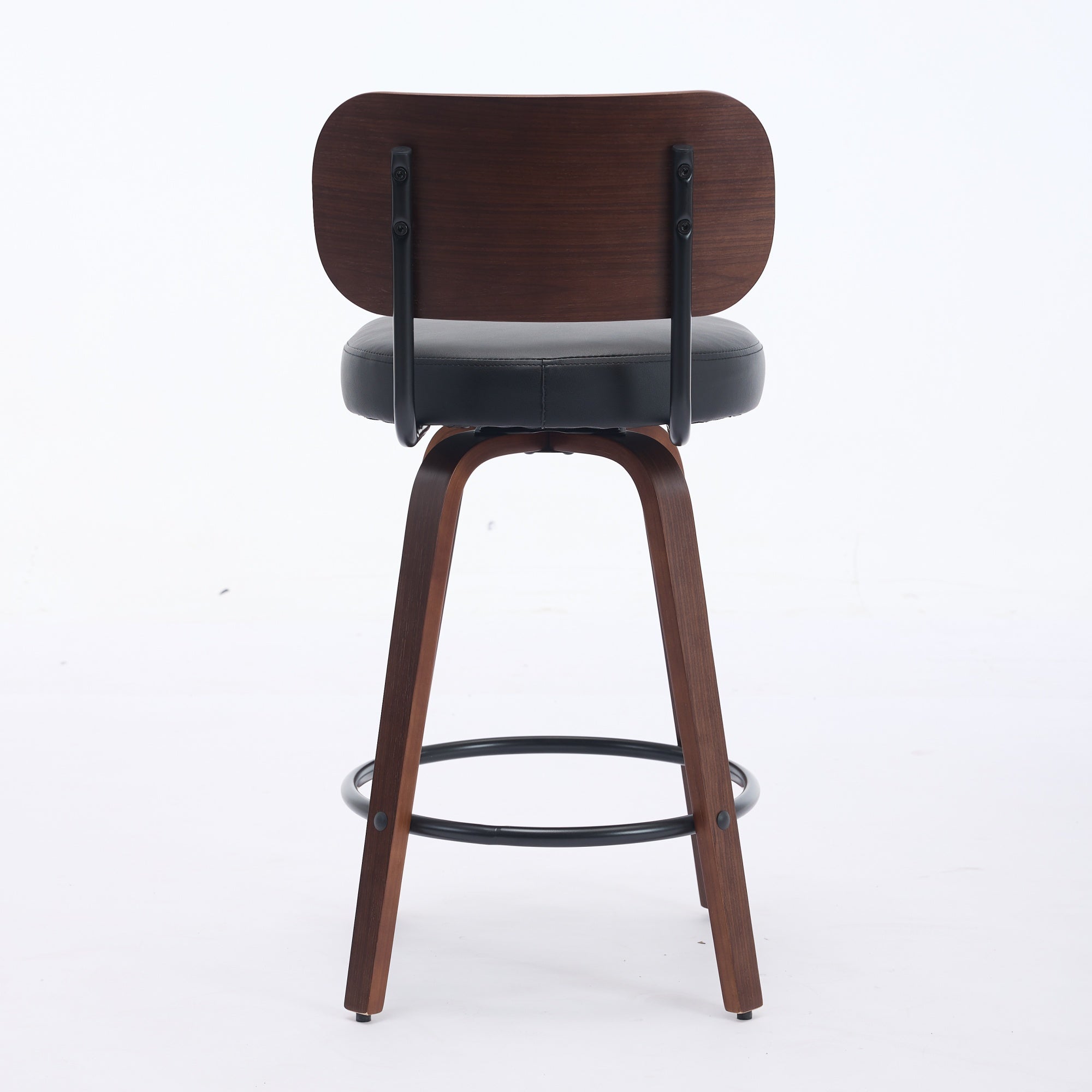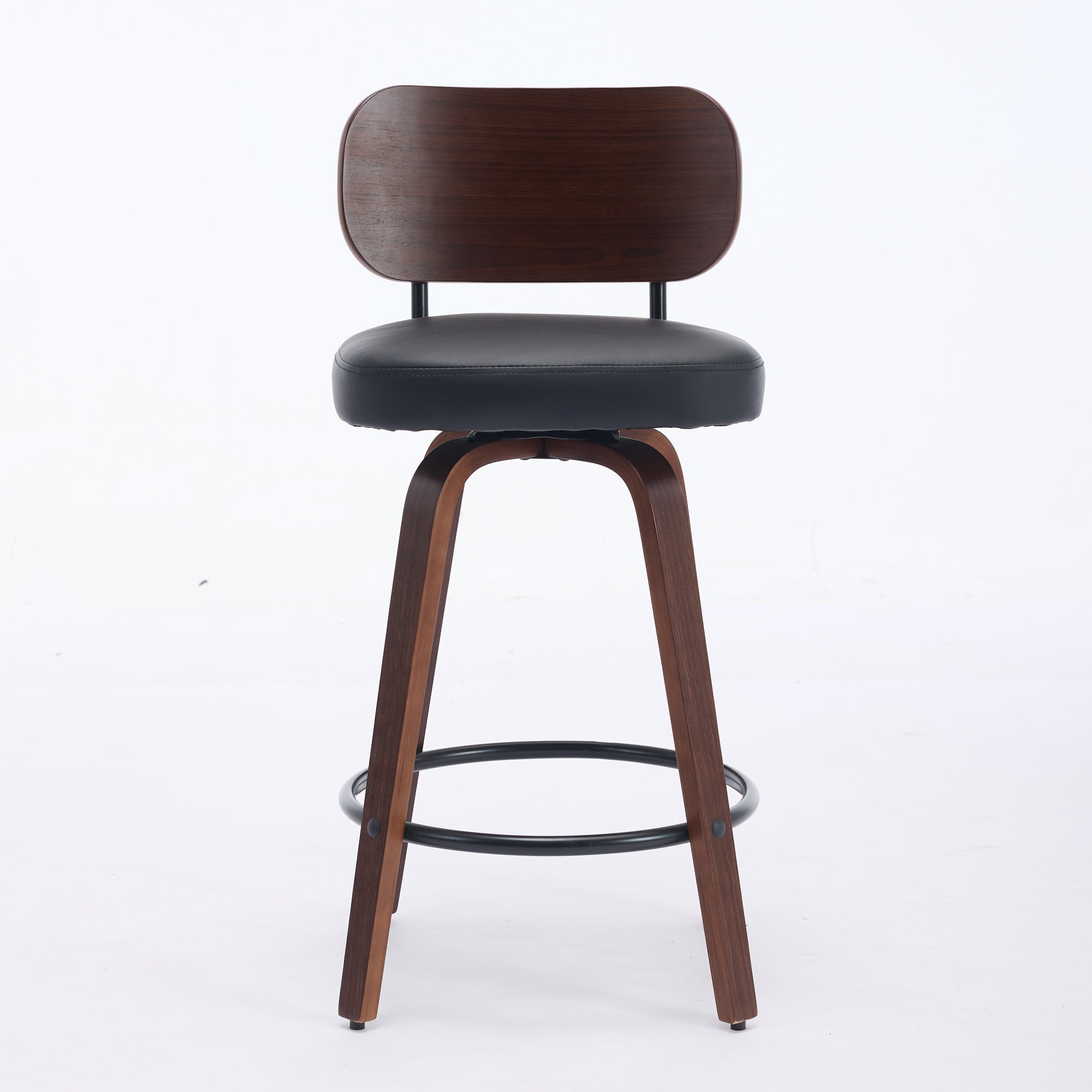 Invite timeless mid-century style and everyday comfort into your kitchen or home bar with this set of two swivel counter stools. Upholstered in soft beige PU leather and supported by walnut-veneered bentwood legs and backs, these stools combine cushioned ergonomics with a warm, contemporary silhouette — ideal for island seating, breakfast nooks, or casual dining spaces.