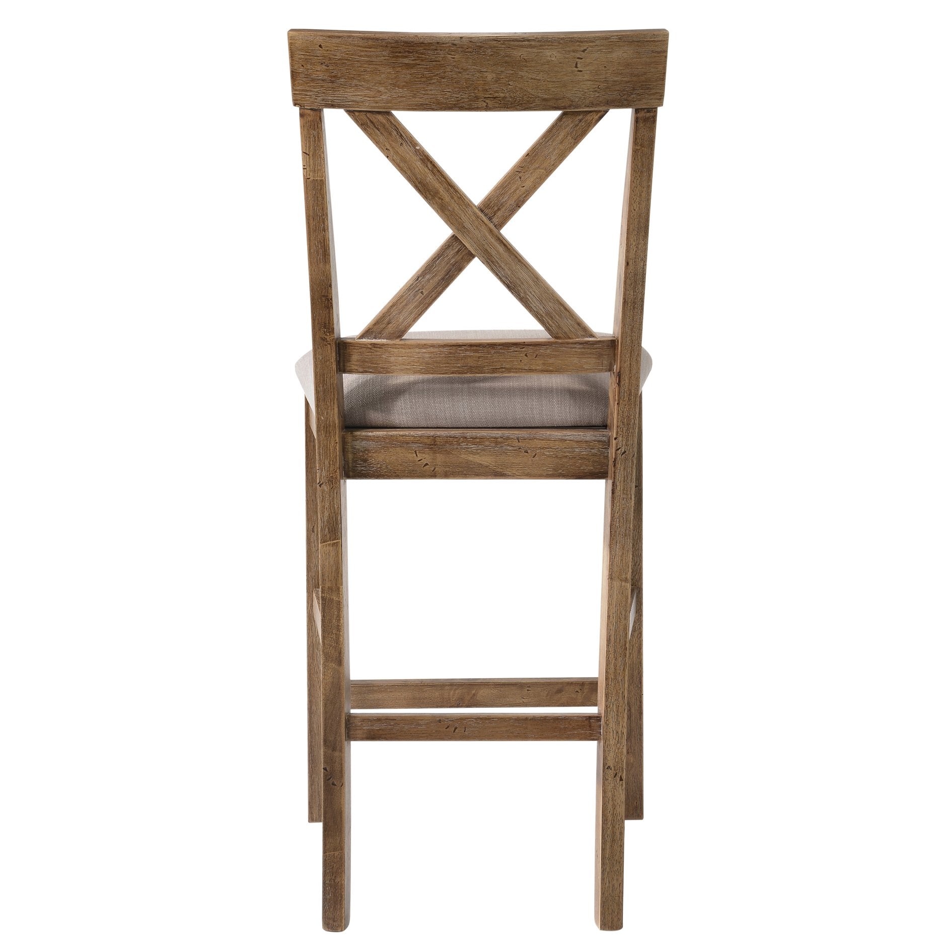 Bring warmth and timeless style to your kitchen island or home bar with this pair of counter height stools. Their tan linen upholstery and classic cross-back silhouette create an inviting, farmhouse-inspired look while generous cushioning and sturdy wood construction ensure comfortable, reliable seating for everyday use or entertaining.