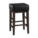 Bring casual comfort and modern transitional style to your kitchen or entertaining area with this set of two 24-inch counter height stools. The square black faux leather seats deliver a clean, contemporary look while the espresso-finished solid wood frames add warmth and durable support. These stools are designed for everyday use—easy to pair with existing counters or tables and simple to assemble—making them a practical, stylish seating solution for breakfast nooks, islands, and bars.
