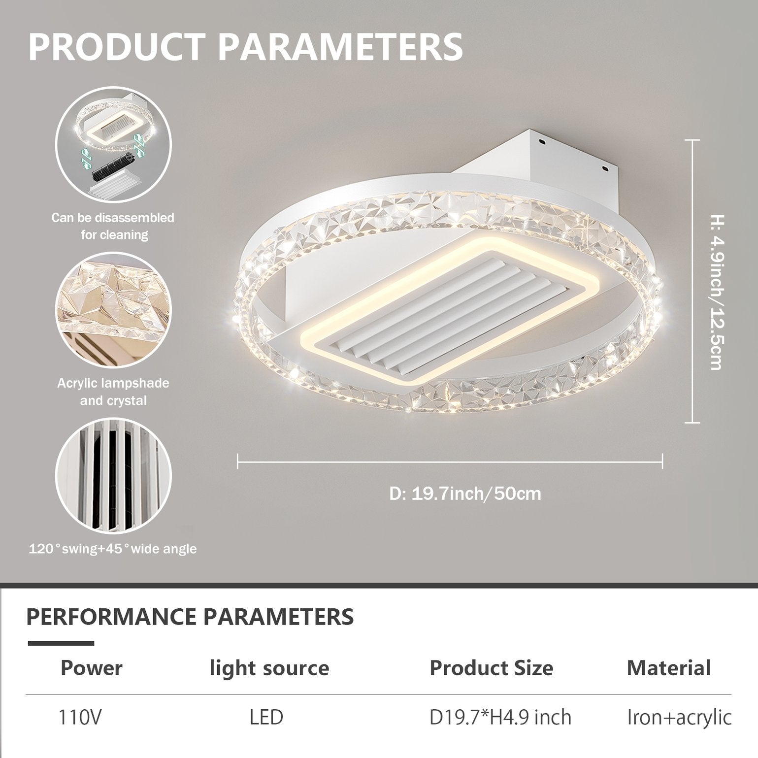 - Independent light and fan operation: Run the LED illumination and fan separately for flexible comfort and energy savings