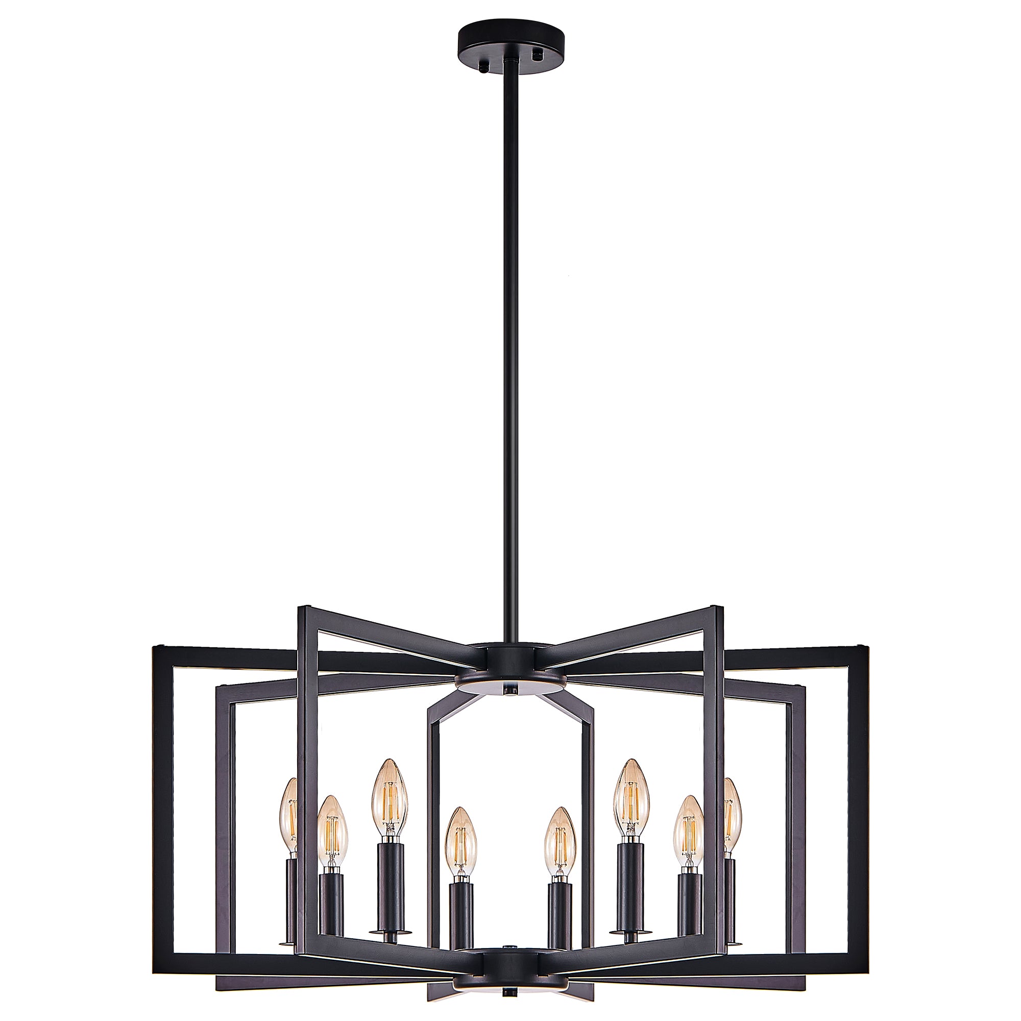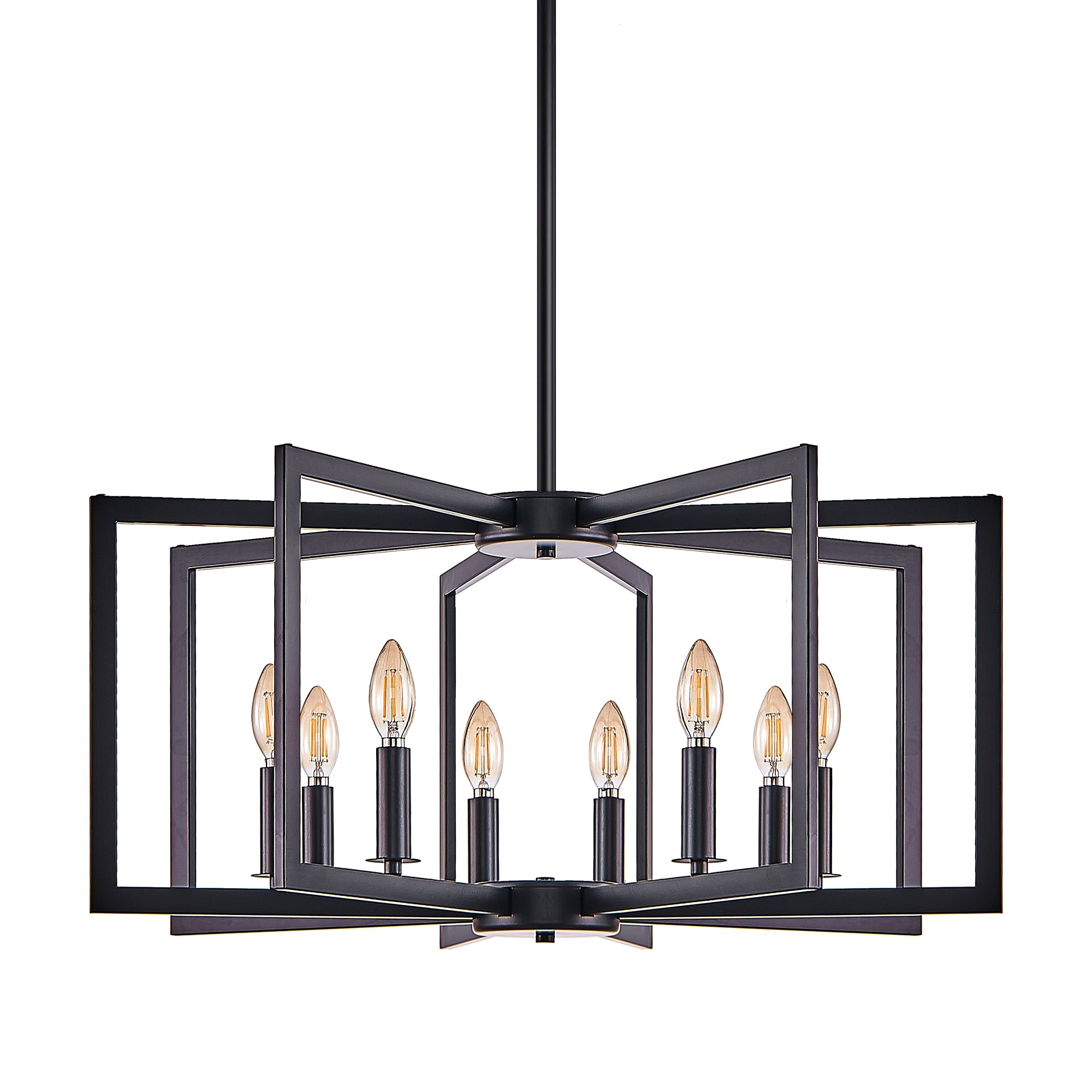 Elevate your interior with a striking blend of industrial edge and modern geometry. This black metal chandelier brings architectural interest and warm, customizable illumination to living rooms, dining rooms, or kitchens—perfect over a dining table, island, or in an entryway. Its open geometric frame showcases bulbs and casts dynamic shadows while the durable iron construction ensures long-lasting style.