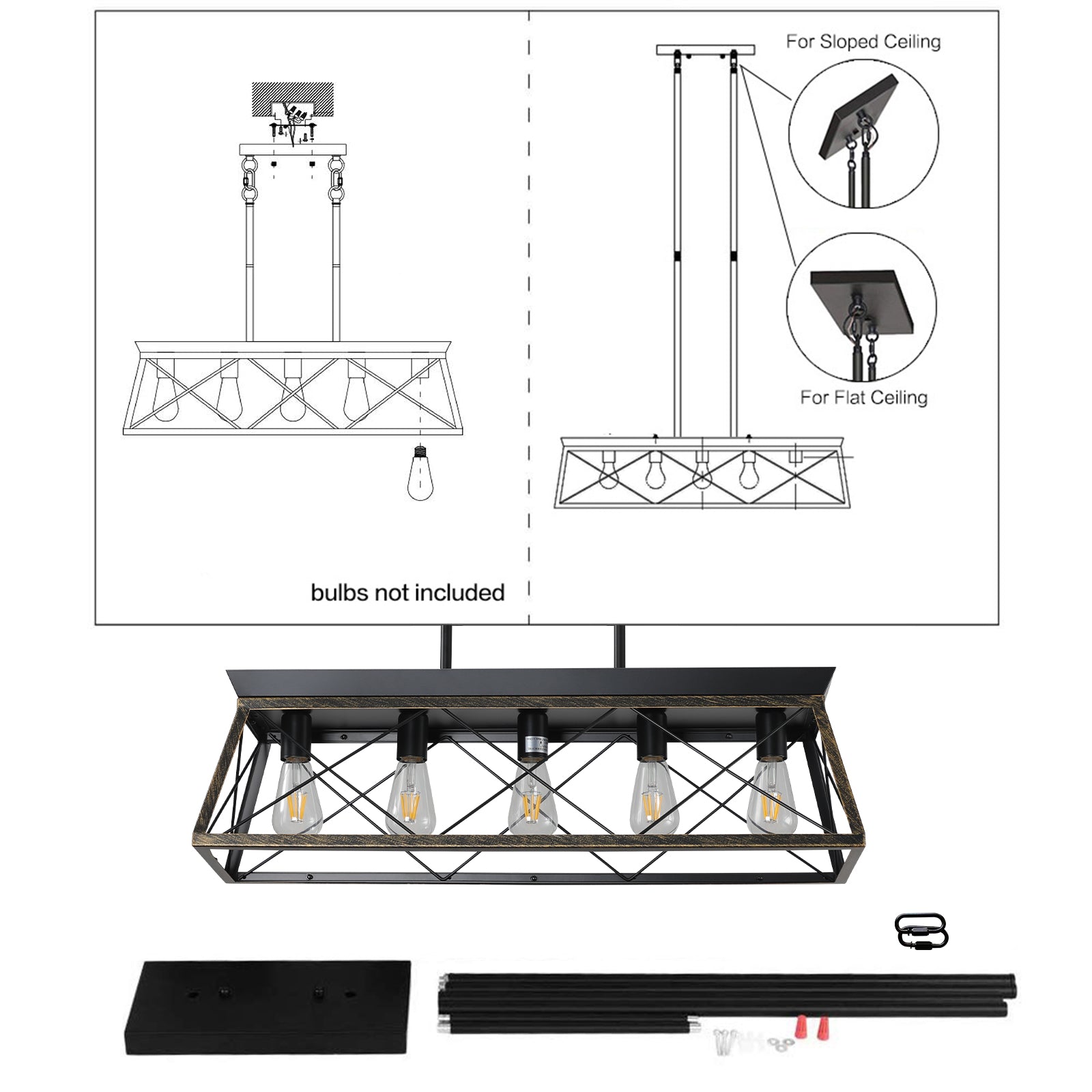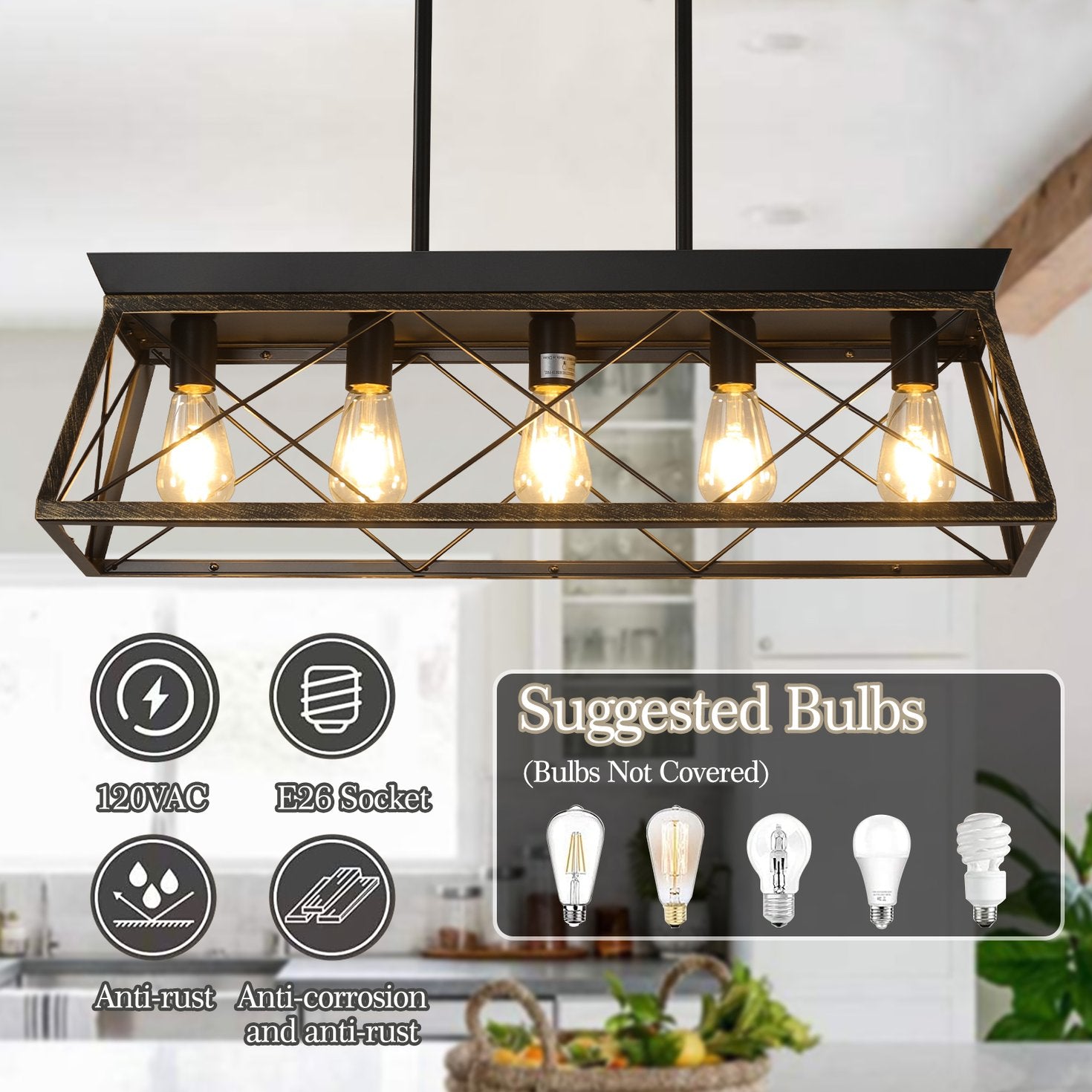 - Five E26 sockets — accepts up to 5 × 60W bulbs (bulbs not included); compatible with LED, incandescent, CFL, and halogen bulbs for flexible lighting options and energy efficiency.
