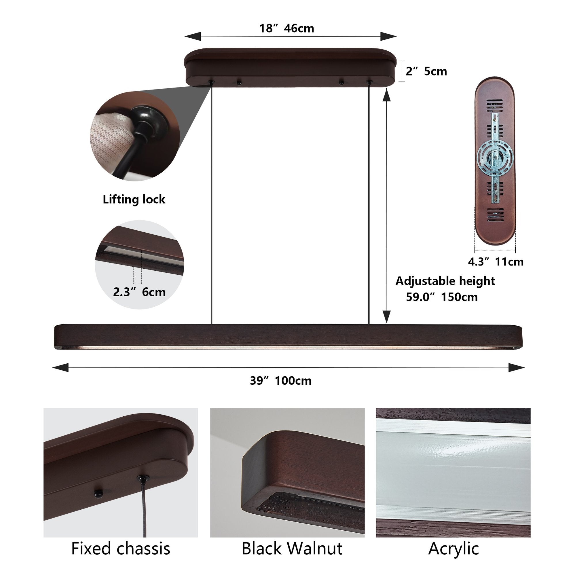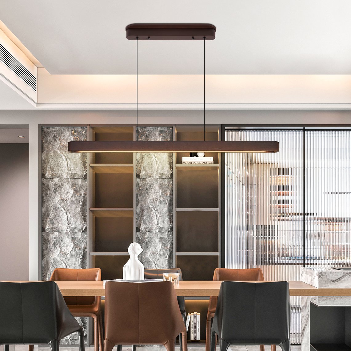 Elevate your dining, kitchen, or living space with this modern walnut-finish LED pendant that blends warm wood accents and sleek iron detailing. Designed for versatile lighting needs, it delivers adjustable color temperature and dimming capability with hard-wired installation and optional remote control for convenient operation. The linear form and refined walnut color create a contemporary focal point over tables, islands, or seating areas.