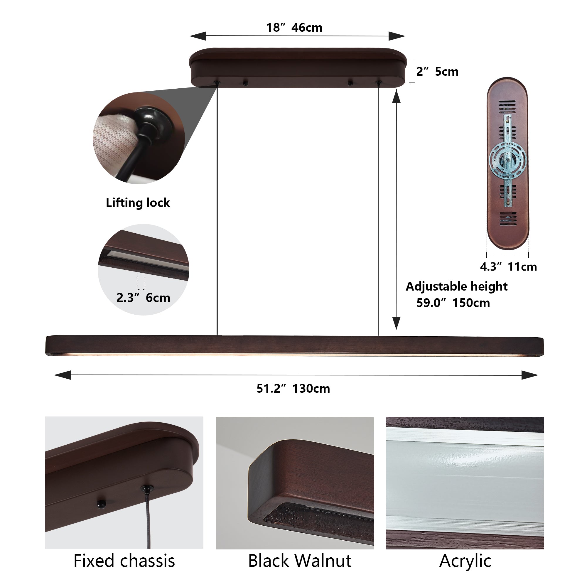 - Ideal For: Dining rooms, kitchens, living rooms, and other interior spaces seeking a modern, minimalist fixture with warm walnut tones.