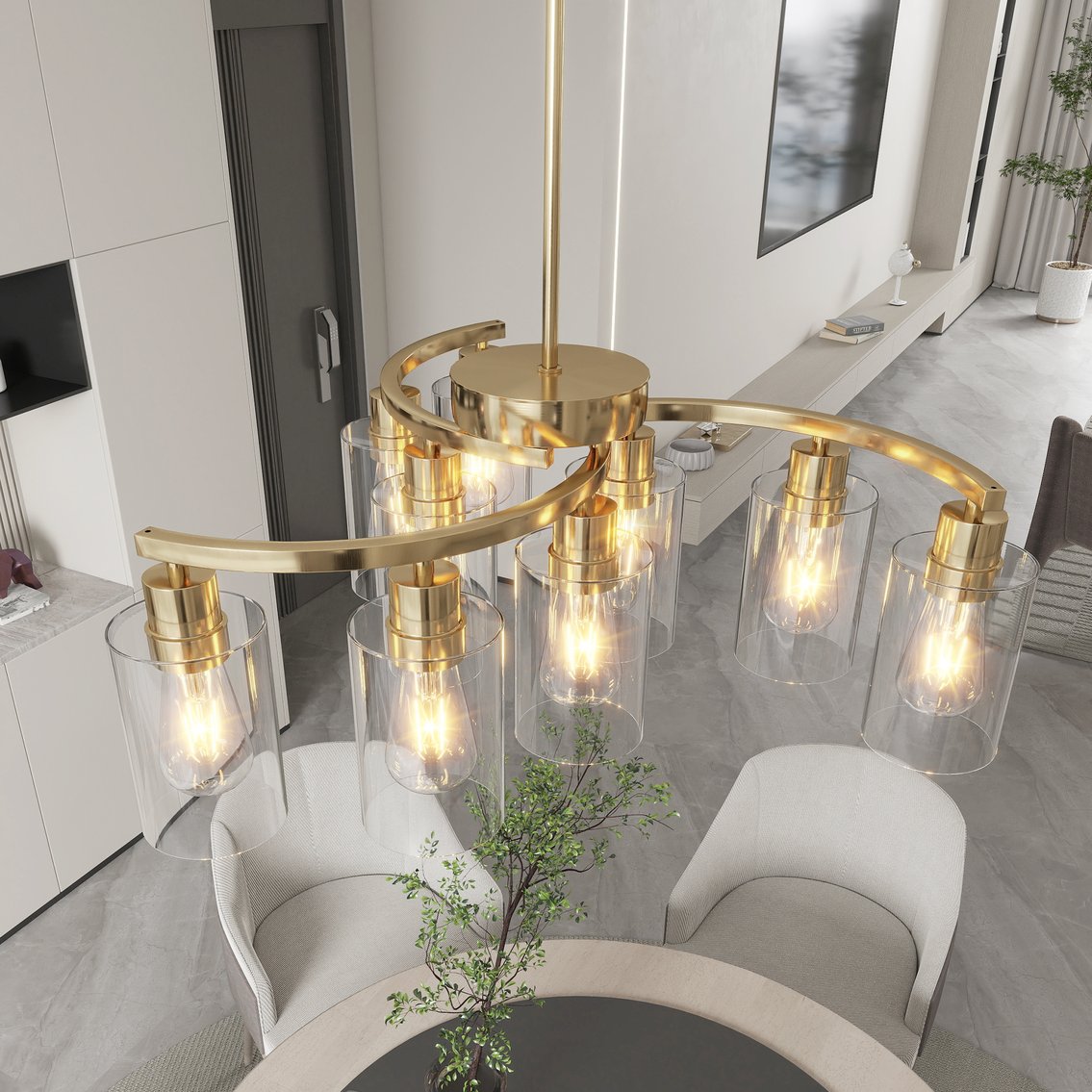 - Configuration: 9-light chandelier with three arms radiating from a central arc for a contemporary yet timeless silhouette.