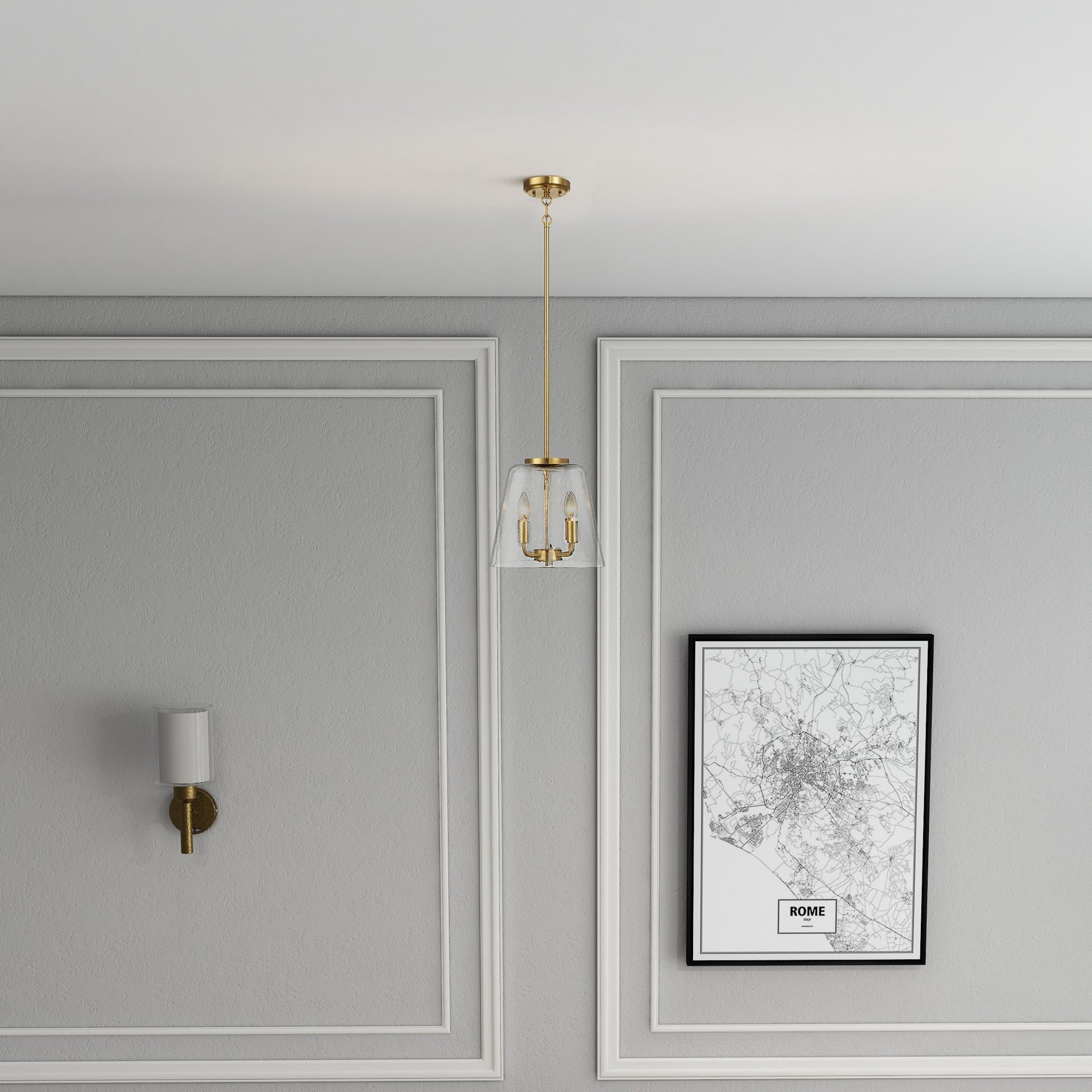 Elevate your décor with the Soiree pendant: a refined four-light fixture that combines satin brass hardware with clear glass shades for a timeless, luminous centerpiece. Designed to provide warm, ambient lighting while complementing modern, transitional, or classic interiors, this pendant balances elegant form with reliable function—ideal over dining tables, kitchen islands, entryways, or living spaces.