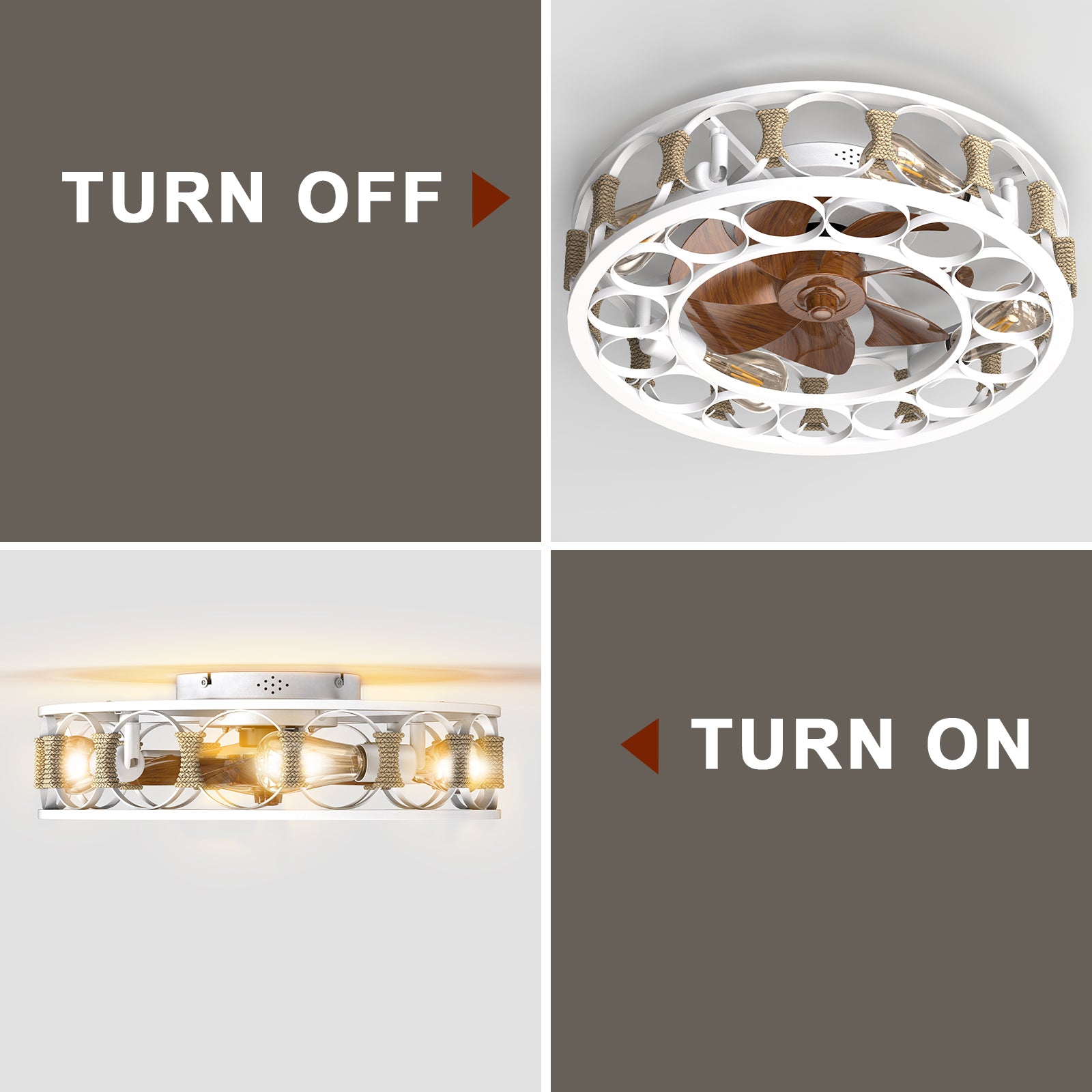 Bring modern, space-saving airflow and bright, energy-efficient lighting to small rooms with this semi-embedded caged ceiling fan. Its enclosed drum housing and reversible blades deliver safe, quiet ventilation for low ceilings, while the integrated LED bulbs and included remote put convenient light and fan control at your fingertips—ideal for bedrooms, kitchens, offices, patios, garages and other compact spaces.
