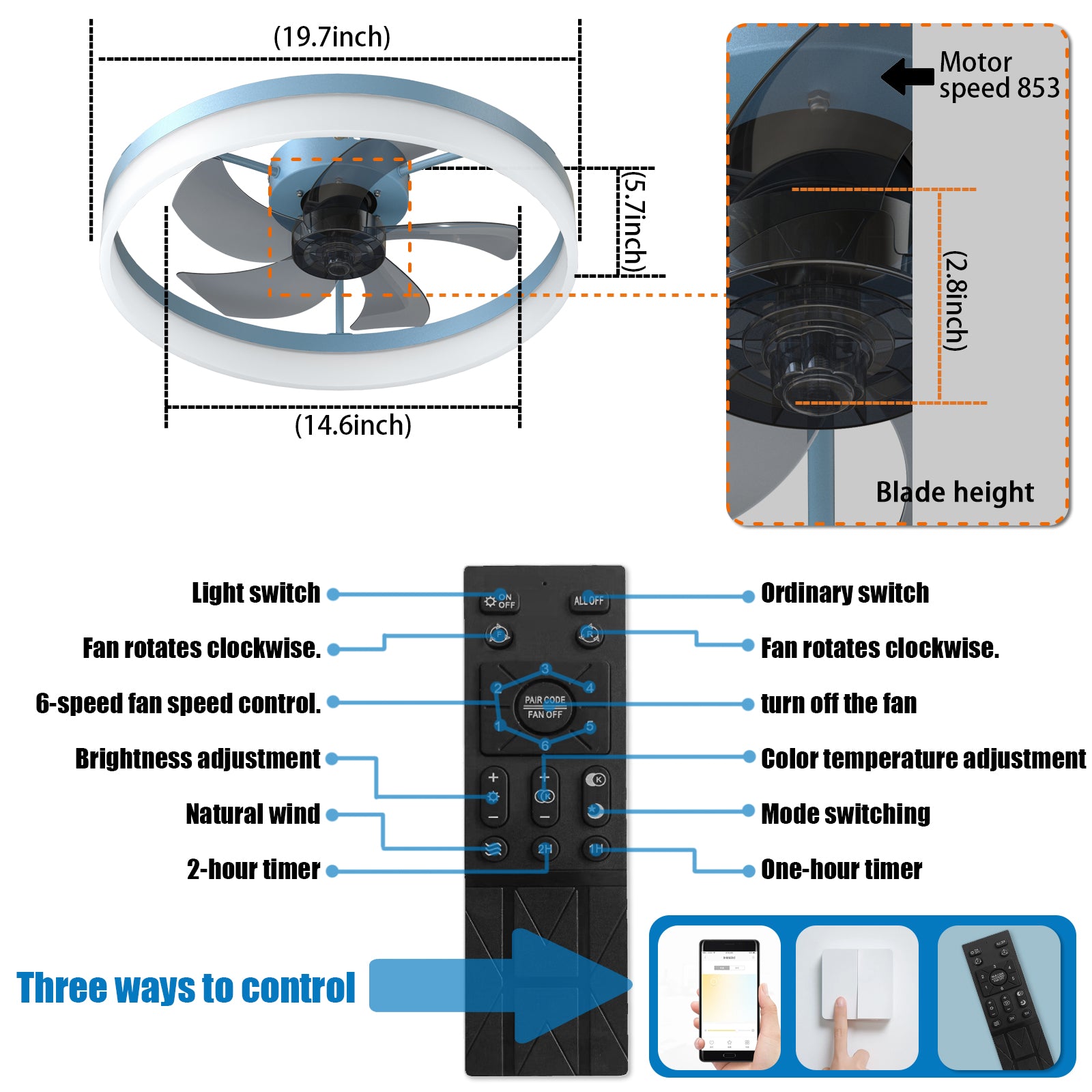 - Remote control convenience: Single remote adjusts fan speed and light color/brightness for easy operation from anywhere in the room.