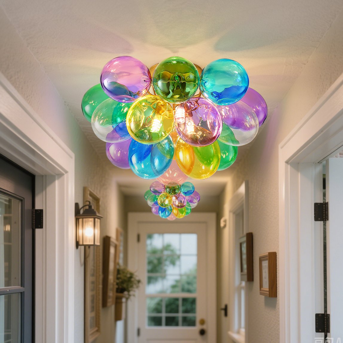 - Playful & Colorful Design: This modern glass bubble ceiling light adds a touch of joy to any space with its vibrant, multi-colored glass bubbles. Designed to bring a pop of color to children’s bedrooms, nurseries, or any playful decor style, it’s both a light fixture and an eye-catching piece of art.