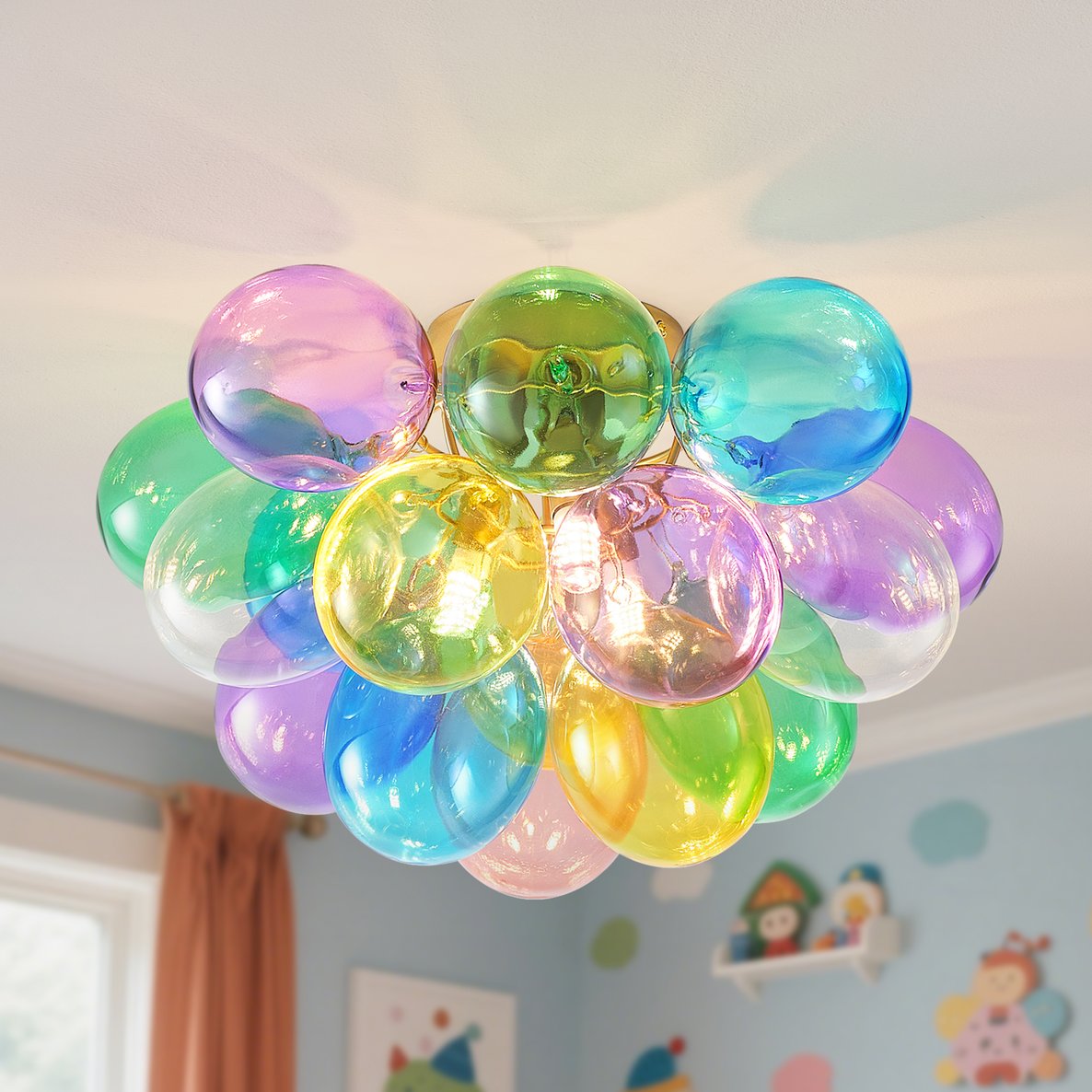 - Ideal for Various Spaces: Not limited to children’s rooms, this bubble ceiling light works well in any room where you want to add a touch of whimsy and color. Suitable for living rooms, dining rooms, and even cafes or boutiques, it’s a versatile choice that enhances any playful or colorful decor theme.