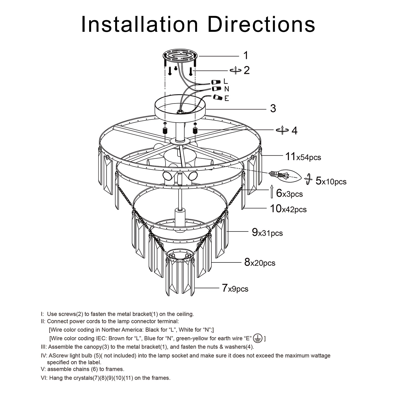 - Bulb Requirements: Uses 10 x E12 bulbs (max 60W each). Bulbs not included — choose warm white LEDs for energy efficiency and a cozy ambiance.