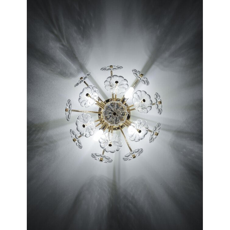 Elevate your room with this elegant gold flush mount ceiling light—a striking blend of modern design and classic glamour. Its mirrored electroplated finish and delicate glass petal details create a radiant focal point that disperses light beautifully, making it ideal for bedrooms, living rooms, hallways, nurseries, closets, and kitchens. Designed for easy installation and reliable performance, this fixture balances decorative appeal with everyday functionality.